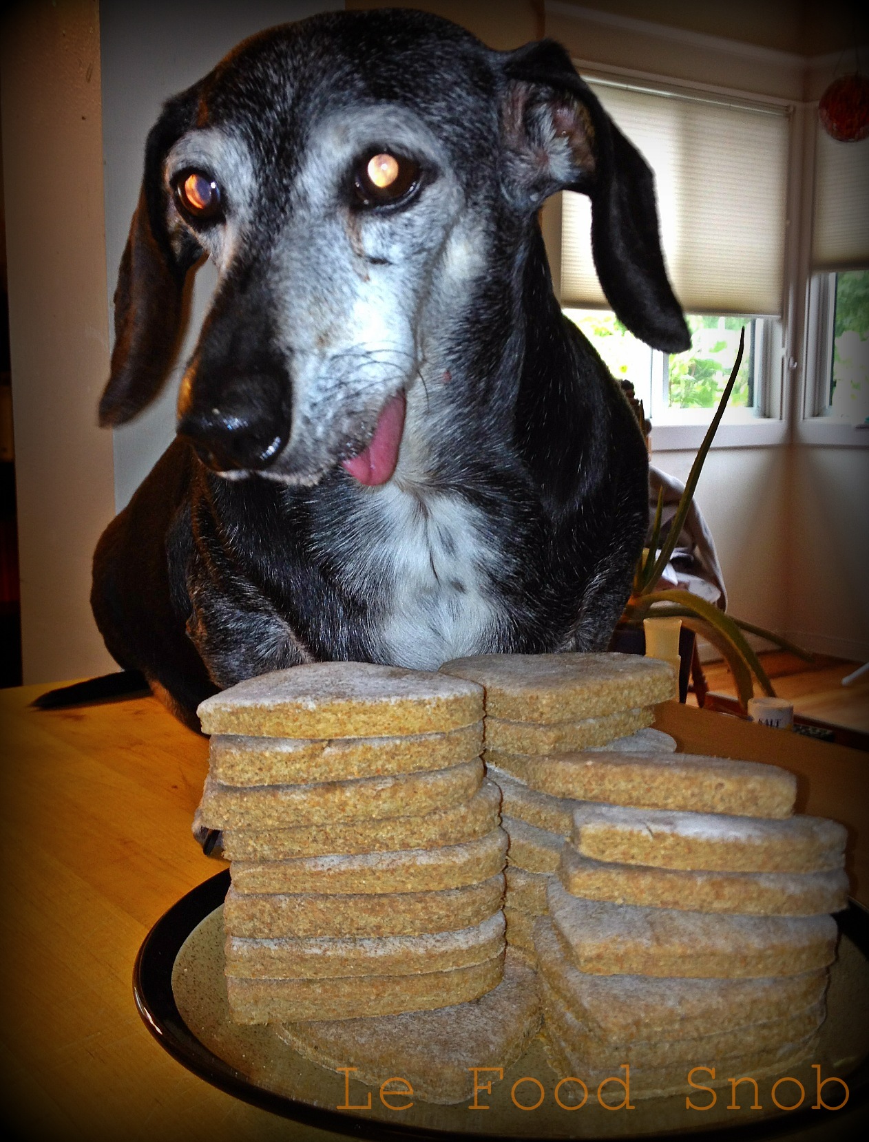 Odie hardly has any teeth anymore, but that didn’t stop him from gobbling up two of these biscuits after they had cooled. (After I tore them into bite-sized pieces of course.)