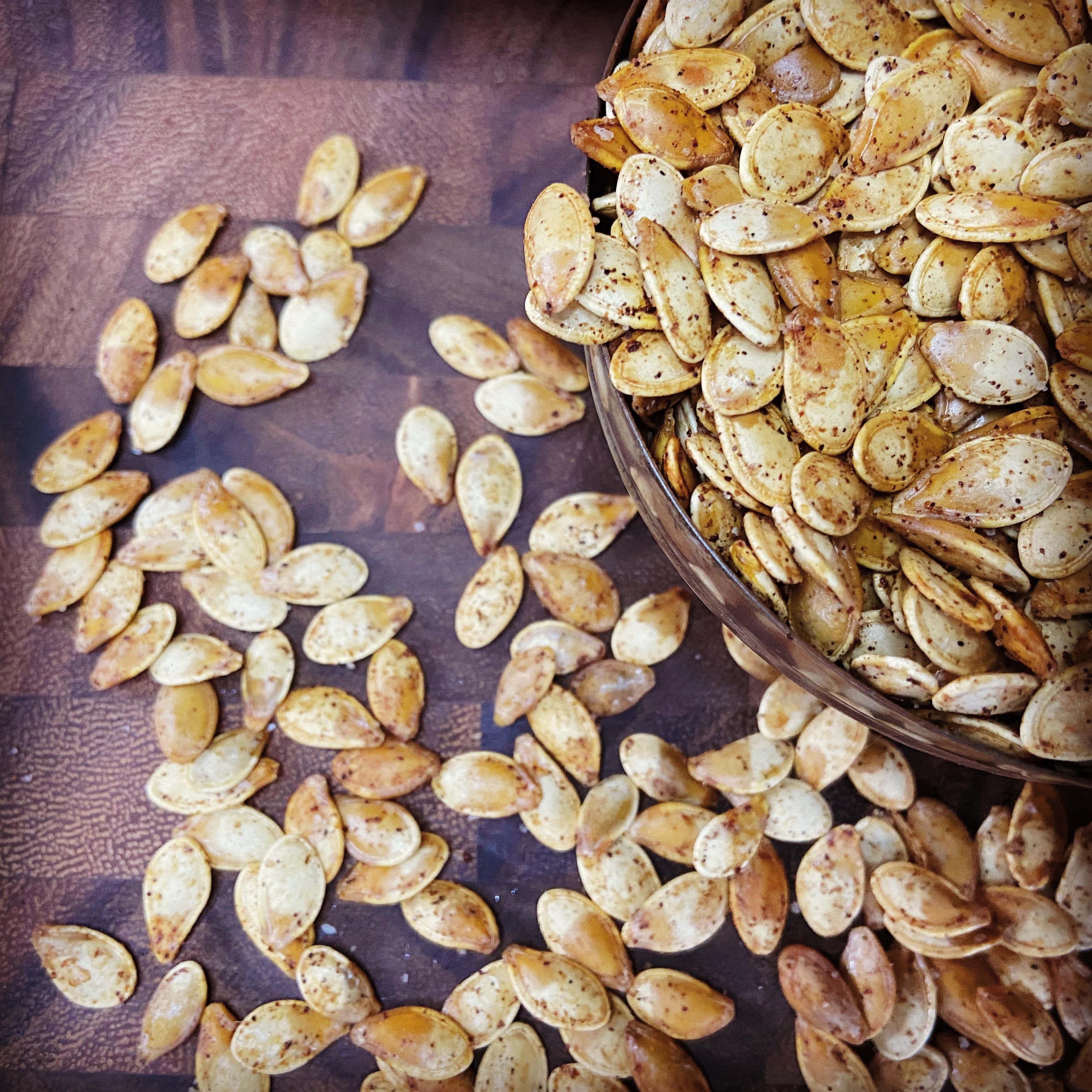 Instead of making the standard roasted pumpkin seeds I decided to give mine a kick with some chipotle flavor. I love spice in general but am particularly drawn to chipotle. Feel free to use whatever seasonings you like.