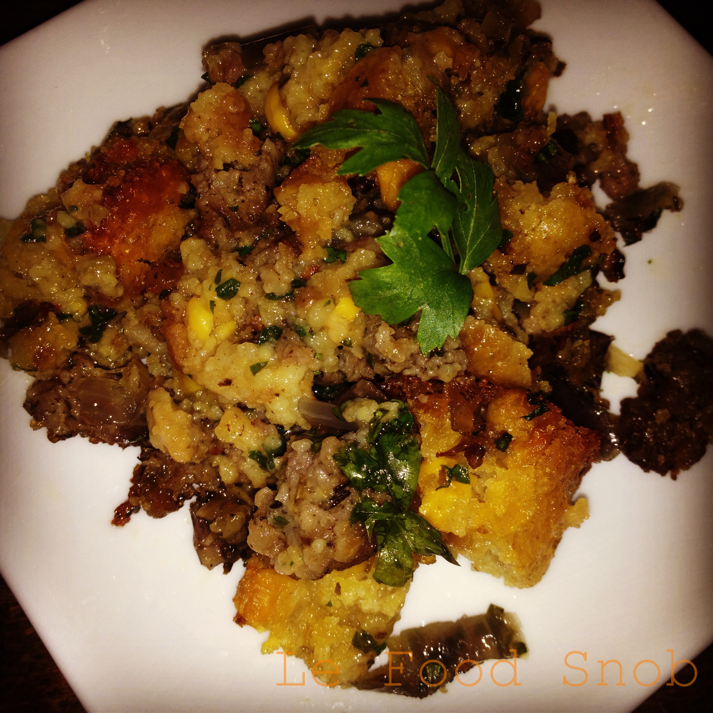 After consulting with my friend Kyna, who recommended a cornbread stuffing, I was swayed to try that variety of stuffing this Thanksgiving. Here is my adaptation of the recipe my grandma sent me.
