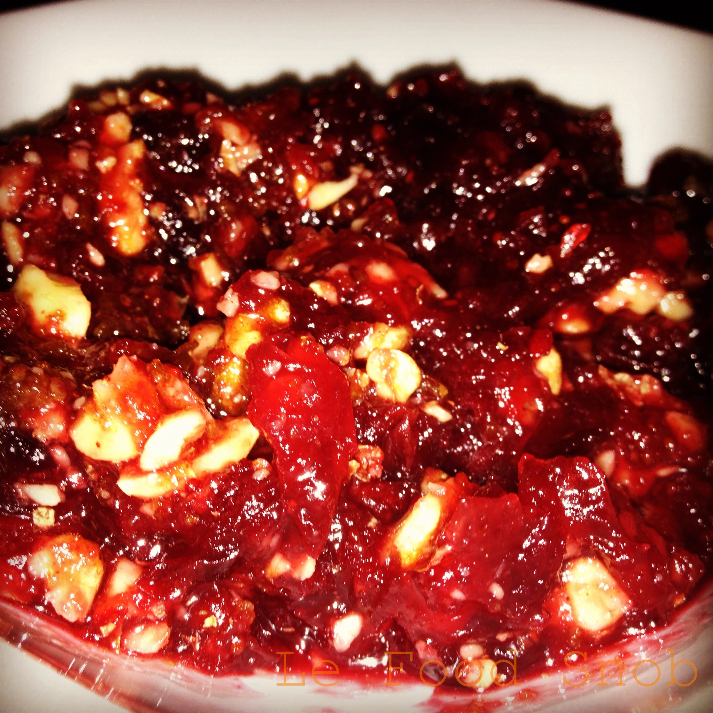 Thanksgiving Day Bourbon Cranberry Sauce with Candied Walnuts