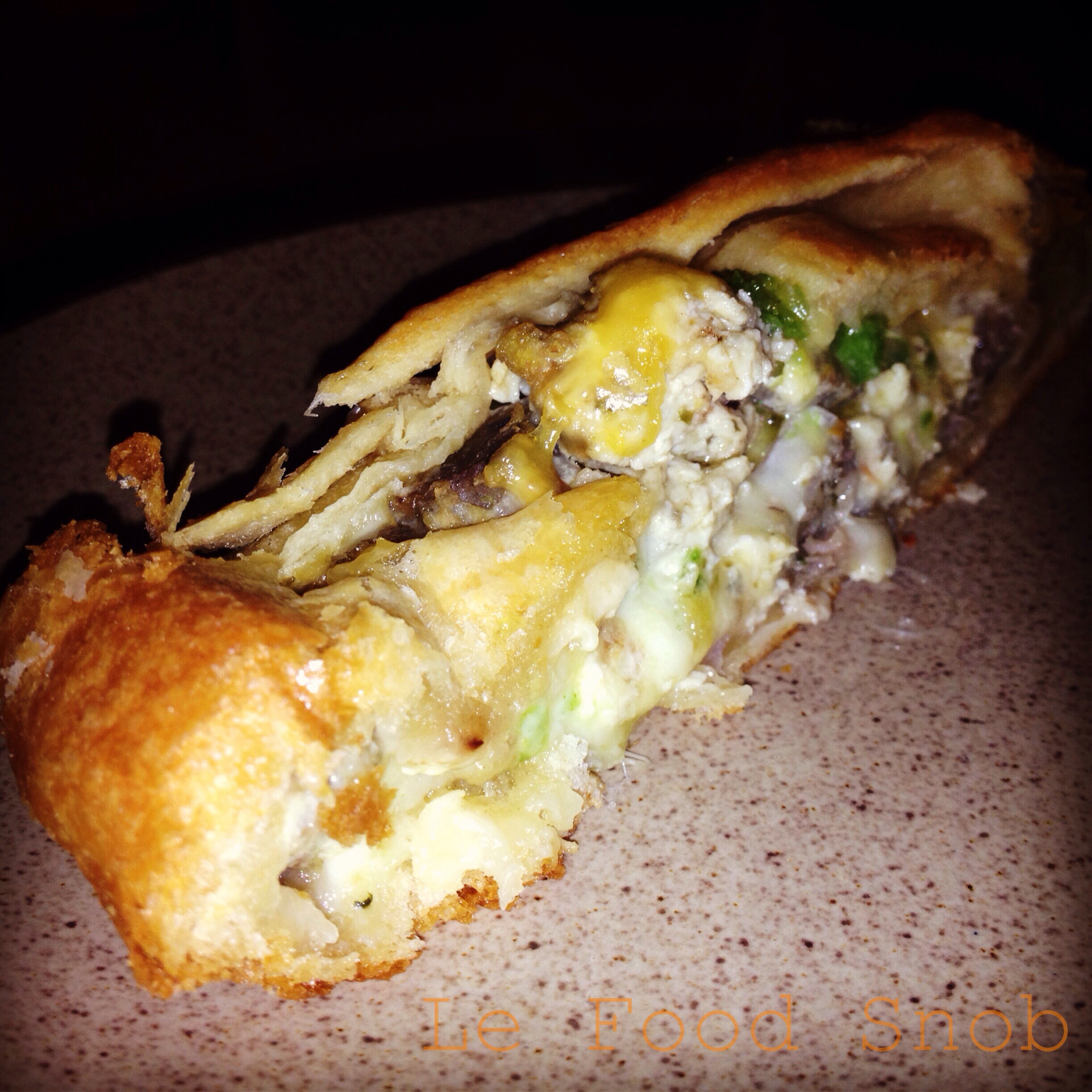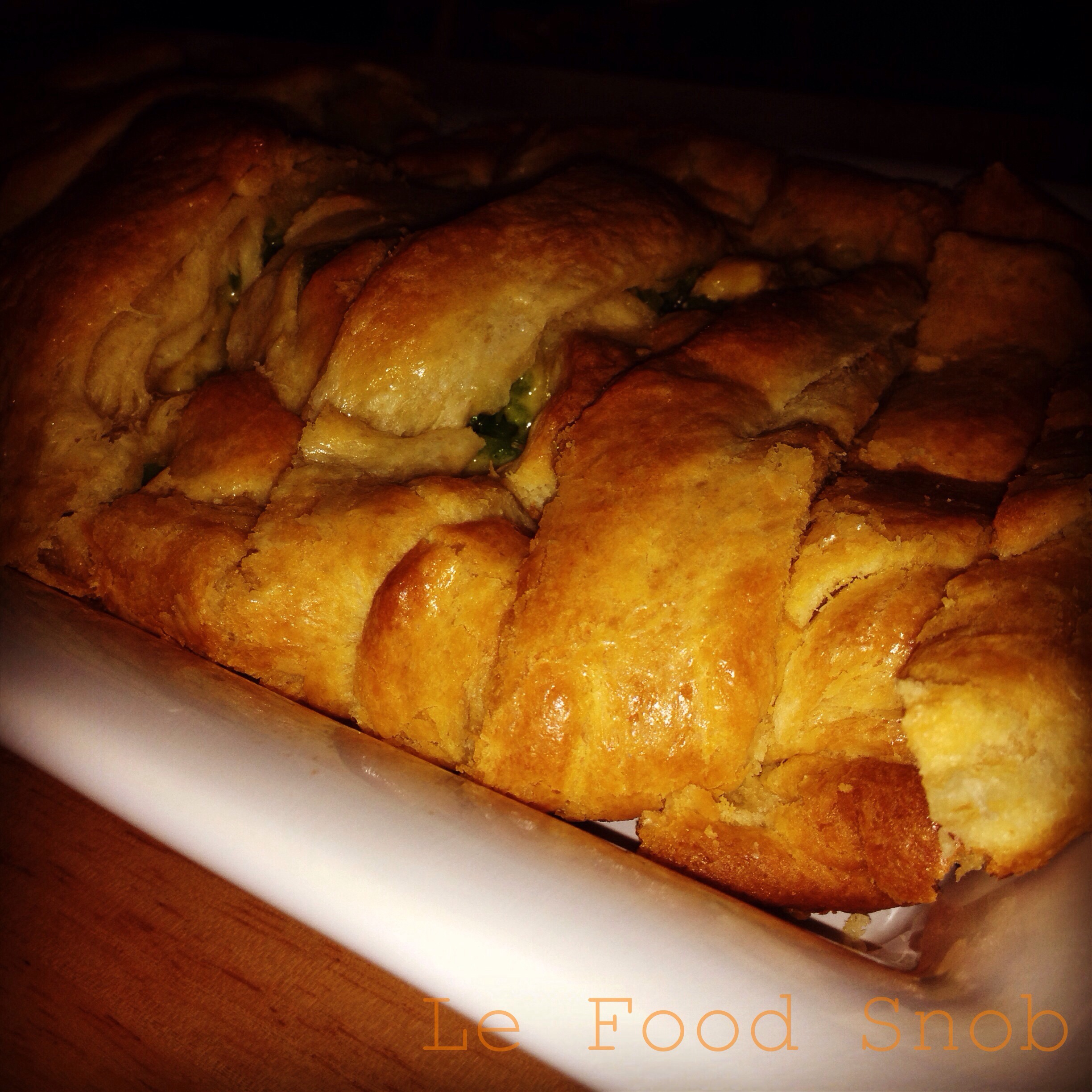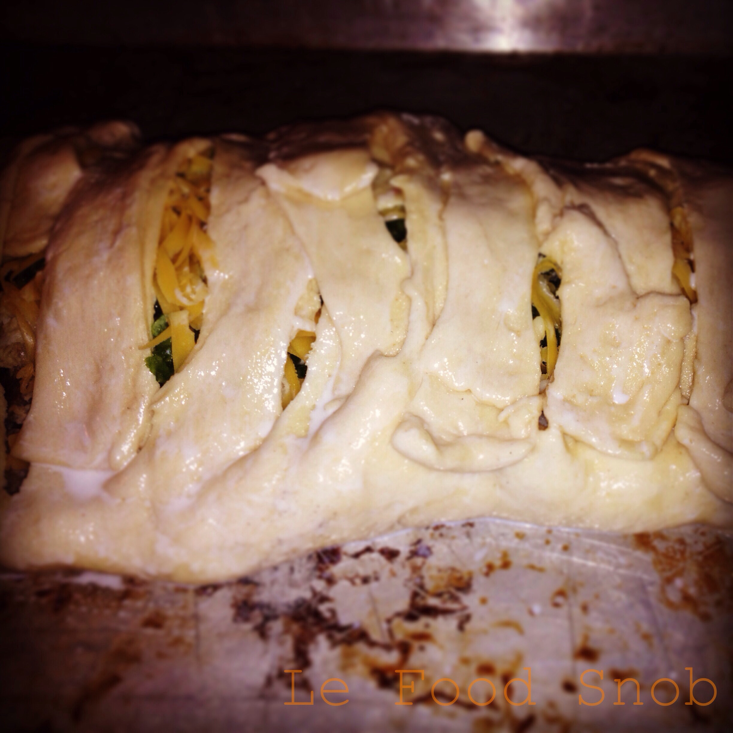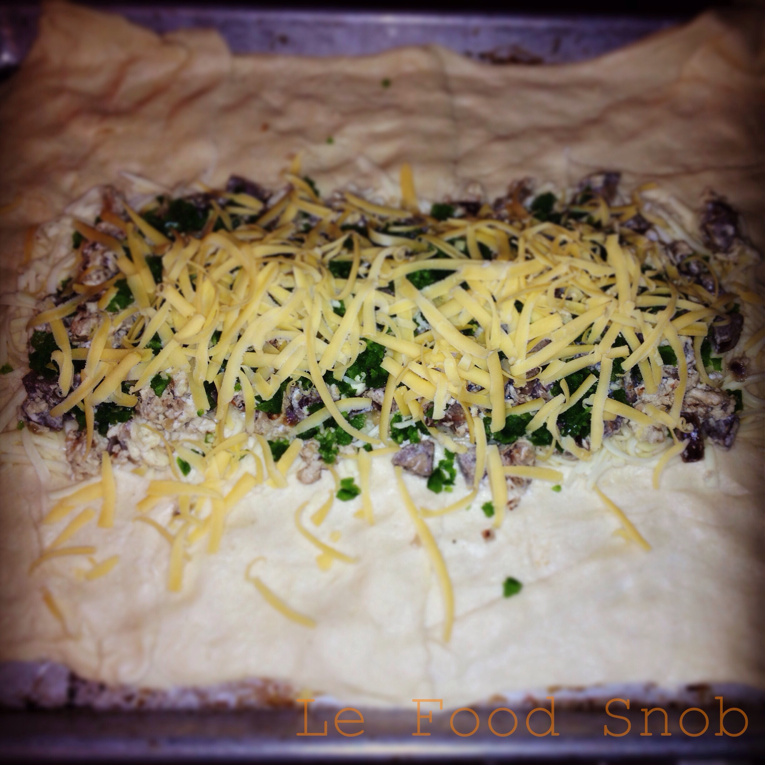 - 1 (13.8-ounce) can refrigerated pizza crust dough (instead I used two cans of crescent roll dough)