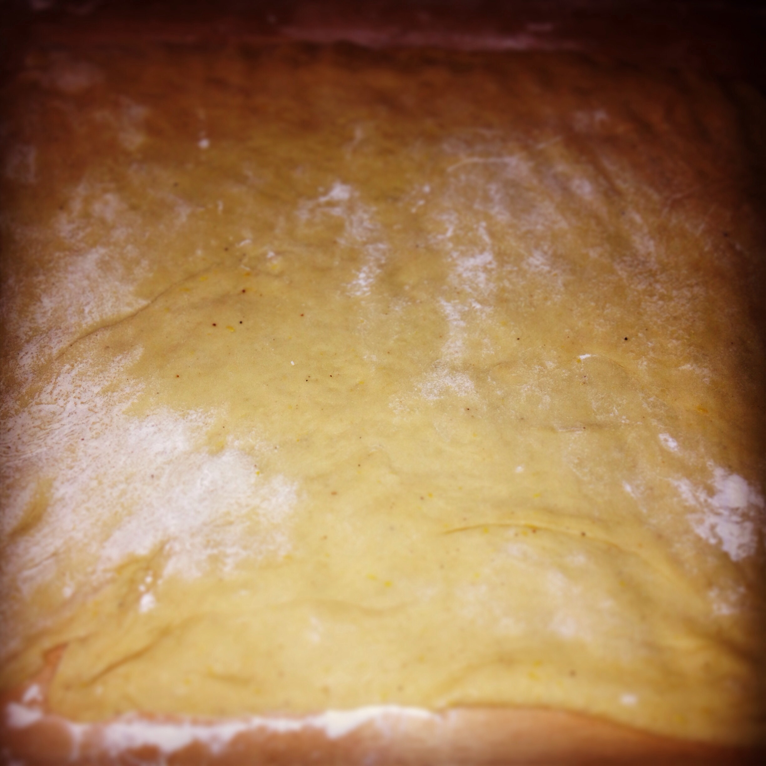 - Spread the dough evenly with 3 tablespoons of very soft butter, then spread the lemon-sugar mixture over top.