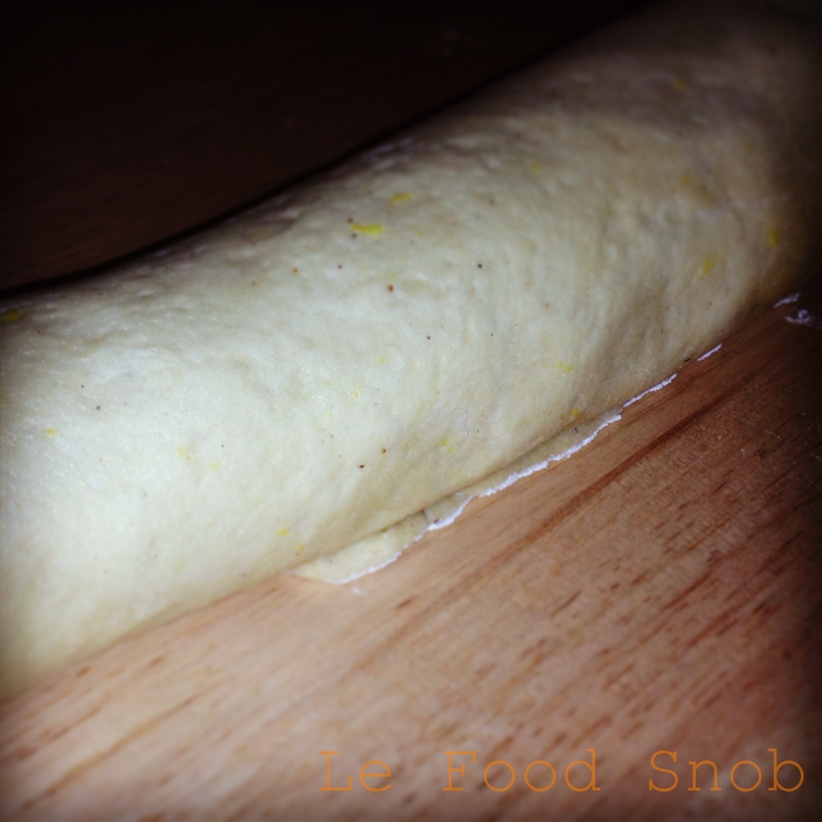 - With the mixer paddle, stir the softened butter, sugar, vanilla, and one cup of the flour into this milk and yeast mixture. Stir in the salt, nutmeg, and one-third of the lemon zest. Stir in the eggs and enough of the remaining flour to make a soft yet sticky dough.