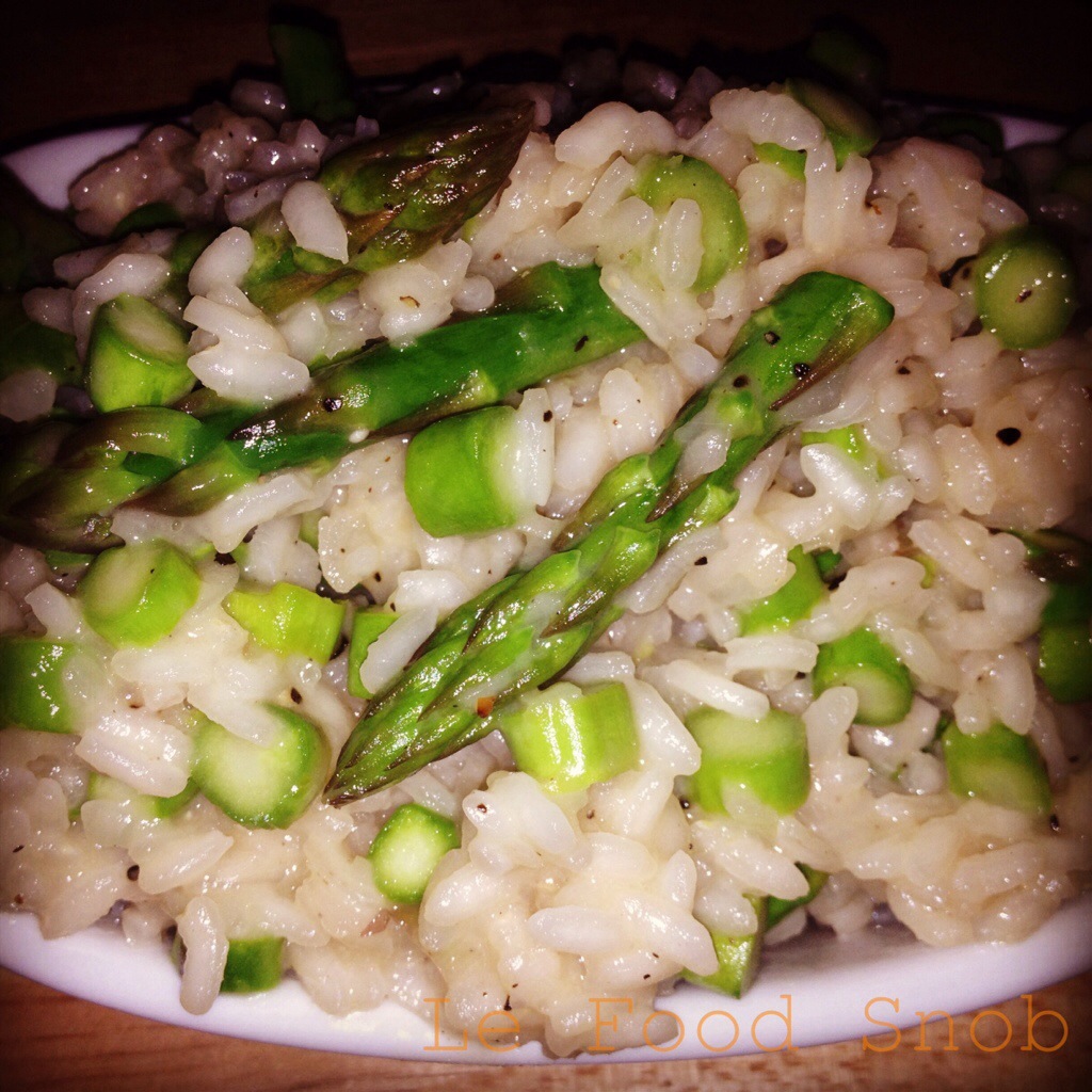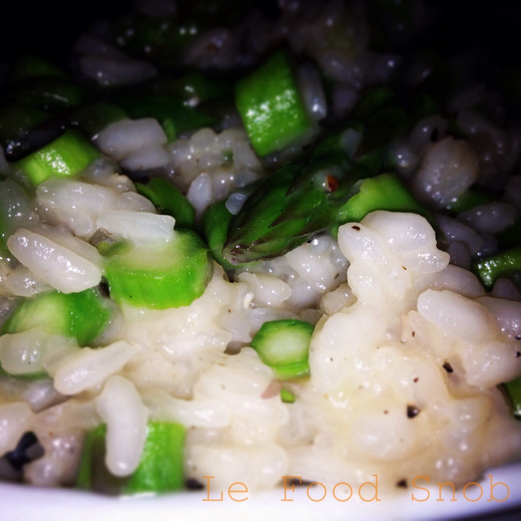 Last week I made the best risotto I think I’ve ever made in my life. It was even better than the risotto Jen, Kyna, Rosie and I shared (the night before I made my own) at Portland Prime. The last time I made risotto I failed hard. It turned out gummy and gluey. But this risotto was perfectly creamy while the asparagus was fresh and crisp. Quite frankly, I fell back in love with risotto this past week.