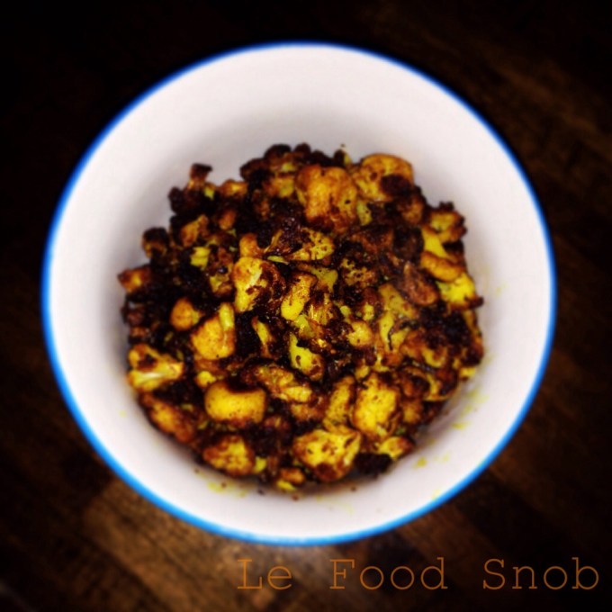 Then just a few weeks ago my coworker and I were on detox diets at the same time. Hers was more forgiving than mine. One night for dinner she roasted cauliflower with olive oil and turmeric. She brought me the leftovers the following day and I was hooked. I’ve been eating this dish two to four times a week since. And when my dad was visiting I got him hooked on it too.
