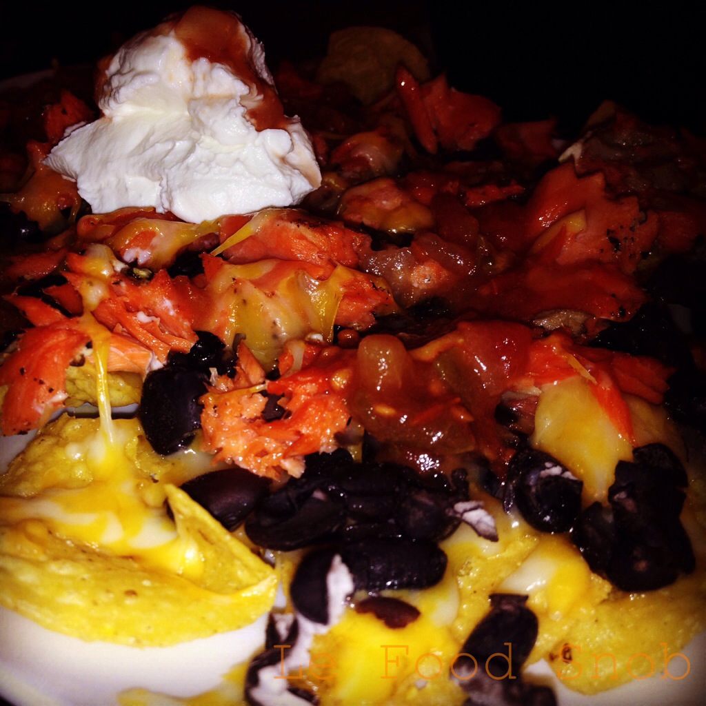 I found the idea of salmon + nachos at once intriguing and slightly disgusting. The most out-on-a-limb I normally go when eating nachos is subbing chicken for beef. But I had this one lone salmon fillet in my fridge this week and didn’t feel like having salmon and spinach again. So I got a little creative (with some help from the internet) and came up with a plate of homemade nachos.