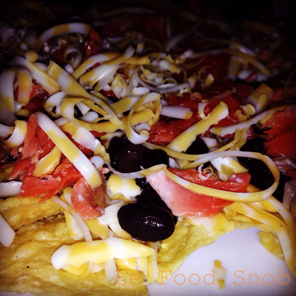 I’m not going to provide any measurements for my recipe because I believe when it comes to homemade nachos you should use the amount of ingredients that pleases you. What pleases me is lots of cheese and a fairly light amount of salmon. Too much salmon on your chip is … Well … Just too much!