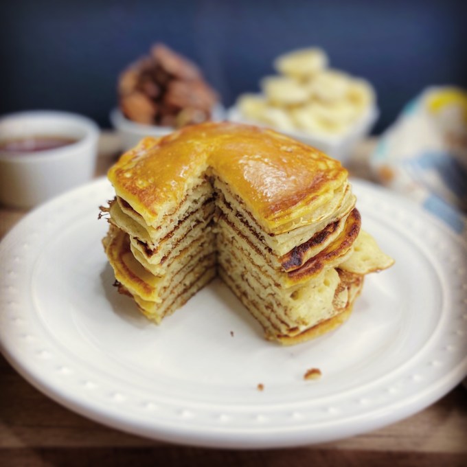 Turns out the vanilla peps up the pancakes slightly. I swear it made them taste slightly sweeter and reminiscent of pancakes you would get at a chain restaurant. (Not sure that’s what I’m trying to achieve in my kitchen, but what the heck.) These pancakes were pretty much perfection. Just the right amount of thickness in that they didn’t lose their “puff” when I removed them from the pan. I would make this recipe again and recommend it to anyone.