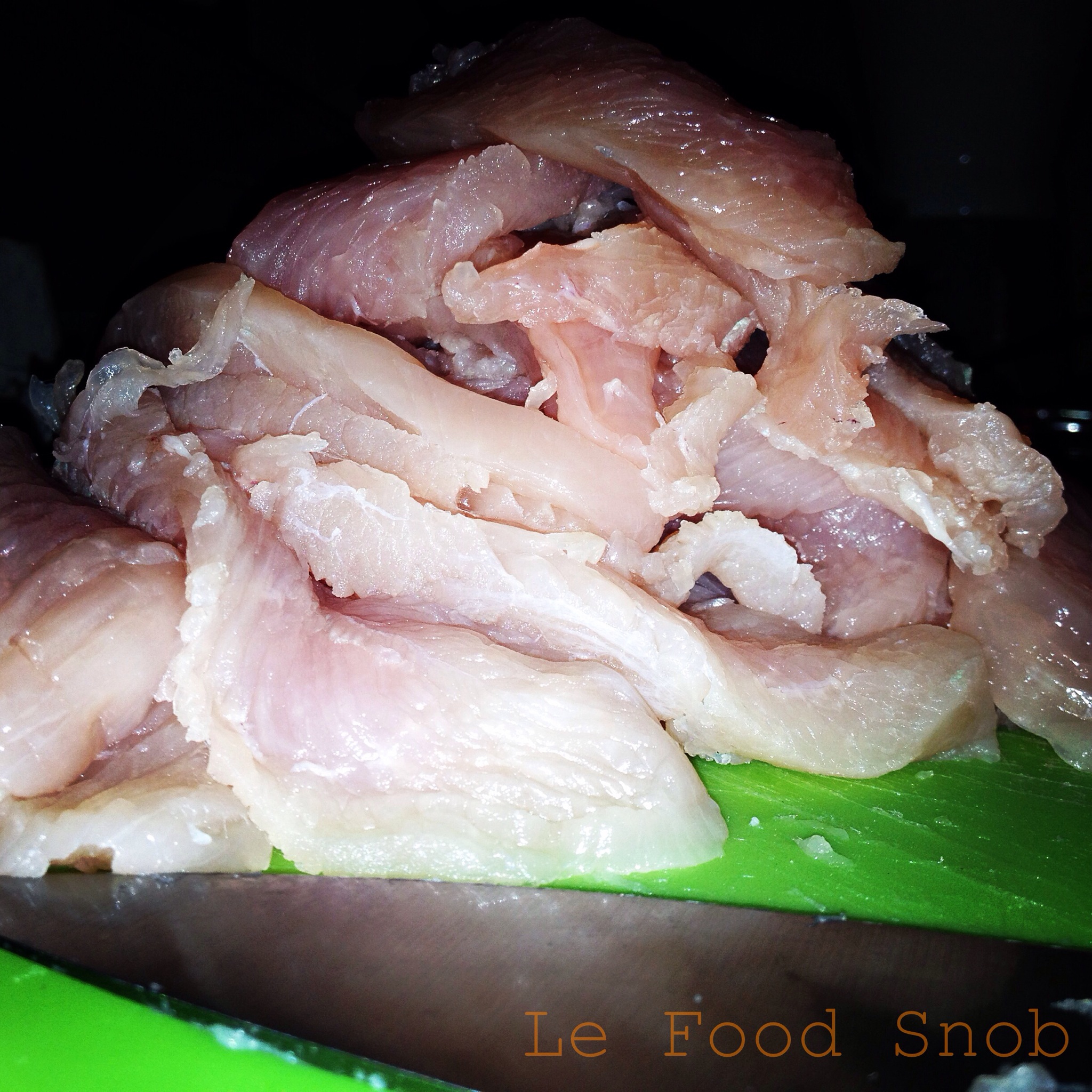 - Trim and discard all fat from the meat. (Don’t skip this step. Fat jerky is not cool and I swear you can’t chew through it.) Cut into strips approximately 5 inches long and 1/2-inch wide with maybe 1/8 to 1/4-inch thickness, give or take.