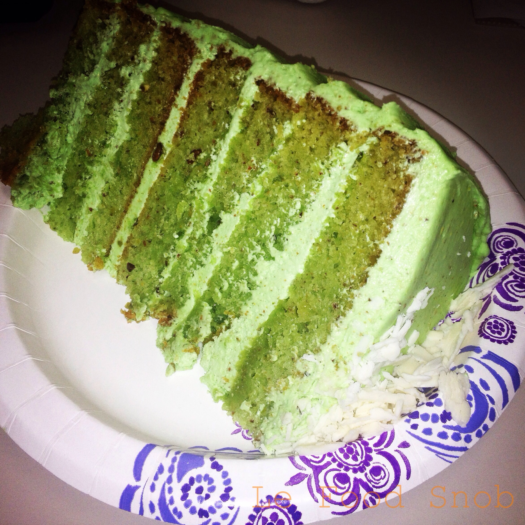 My grandma introduced me to Sweet Paul by sending me a few of his recipes featured in some magazine. I’ve loved him ever since. So when I saw that Sweet Paul has a pistachio layer cake, I knew I had to try it. His recipe makes a four-layer, 8-inch cake. I multiplied his recipe by one and a half to make a seven-layer cake (I was going to make it 9 layers but lost two of them).