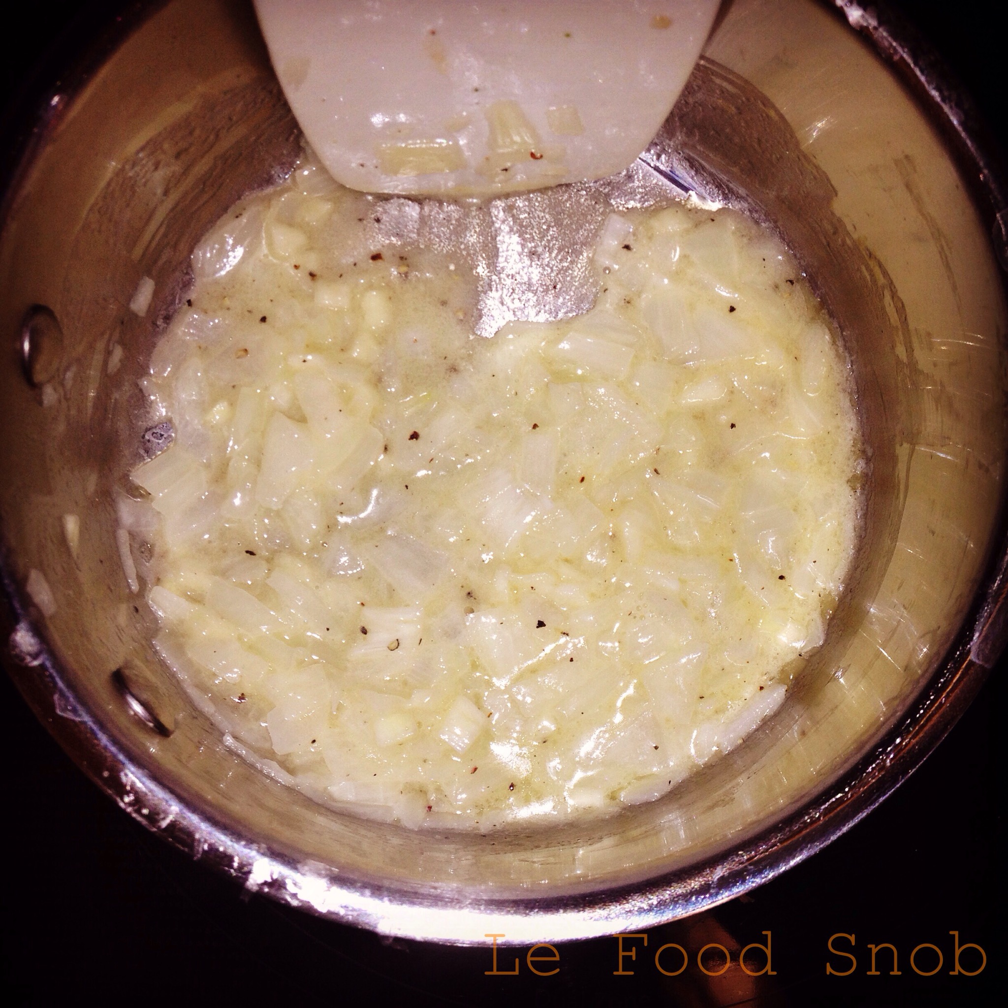 - Melt the butter in a small saucepan over medium heat. Add the onion and garlic and cook until the onions are translucent. Add the flour and stir with a silicone spatula until the flour and butter are evenly combined. Do not let the flour brown.