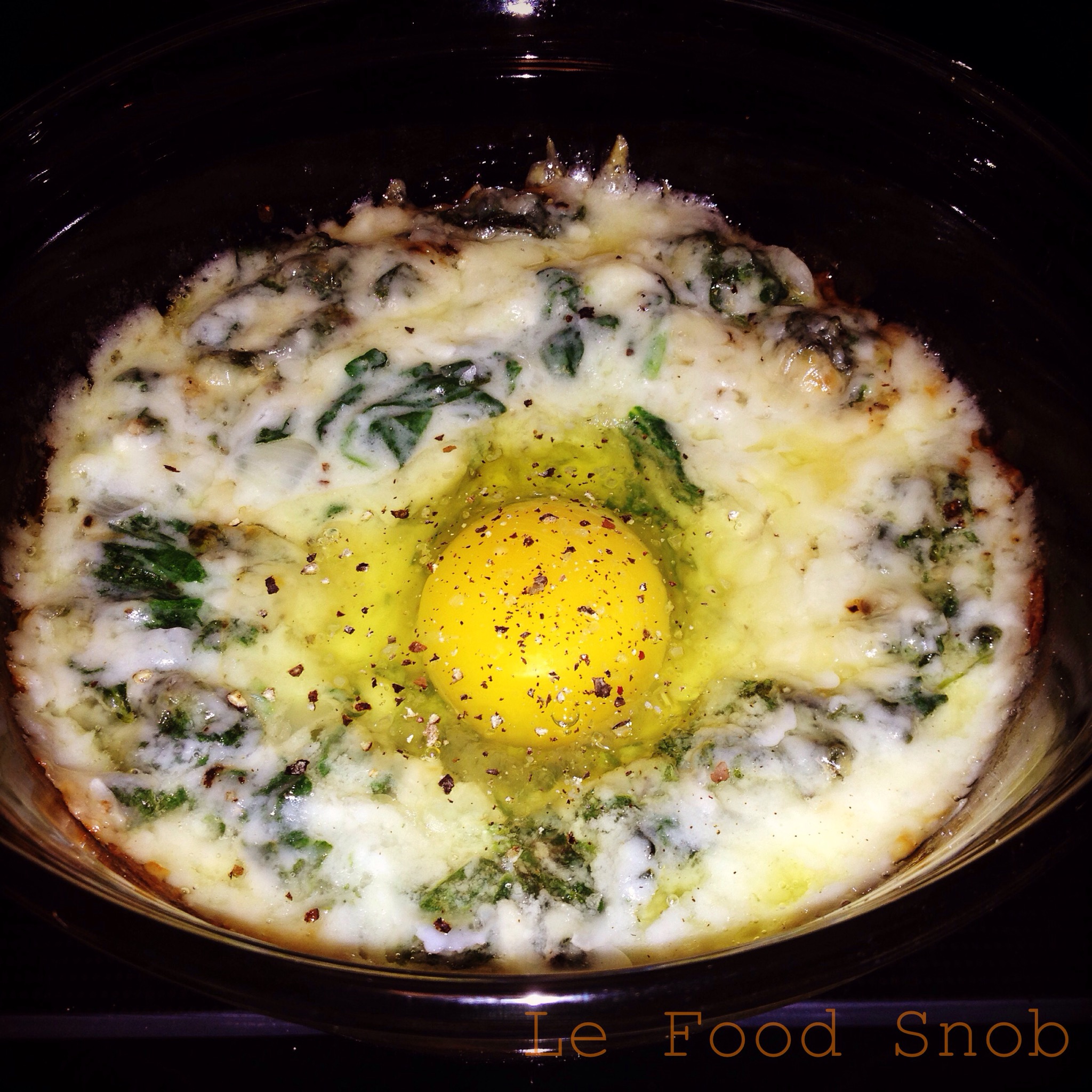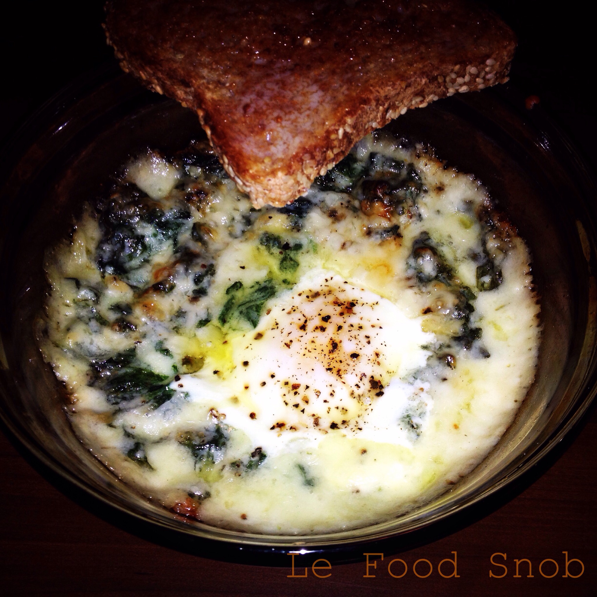 I love breakfast. I could eat it any and every meal of the day. Recently I’ve been craving spinach. Creamed spinach to be exact. And with Thanksgiving coming up (tomorrow!), I figured it’s the perfect time to make some and blog about it. (Doesn’t everyone eat creamed spinach on Thanksgiving? If not, they should.) In my search for the perfect recipe (one that uses fresh spinach – I have no patience for thawing frozen spinach), I came across a breakfast-y recipe at pbs.org that made me decide to forego my Thanksgiving day creamed spinach recipe. I modified the recipe slightly below.
