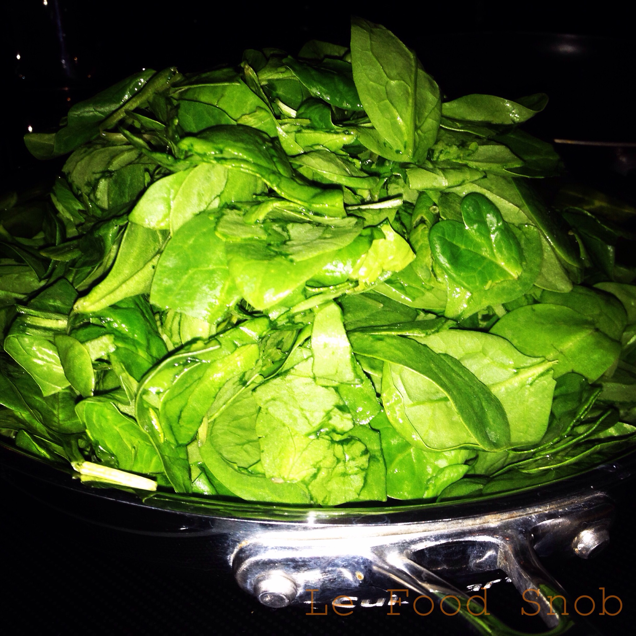 - When the spinach mixture is bubbly (about 10 to 15 minutes if they’re coming from the fridge and depending on the speed of your onion), make one or two wells in the spinach and quickly break the eggs into the wells.