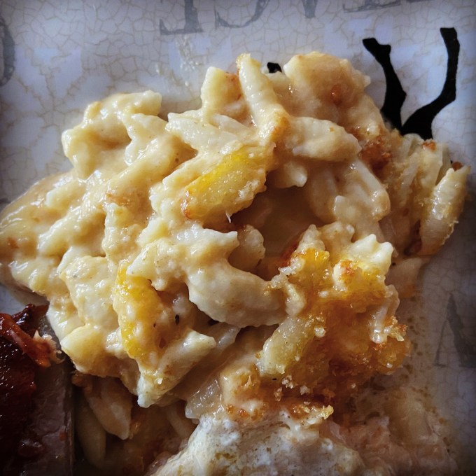 And then when I was prepping to put the dish in the oven, I was even more doubtful. I had never seen a roux that DIDN’T start with a 1:1 ratio of fat and flour (this one is 2:1) and I could not get my sauce to thicken to what I considered substantial enough. But then when I added the cheese my doubts went away. The cheese thickened the sauce so much that I decided to add a bunch of pasta water to it to thin it out. It was the creamiest looking sauce I’ve ever made!