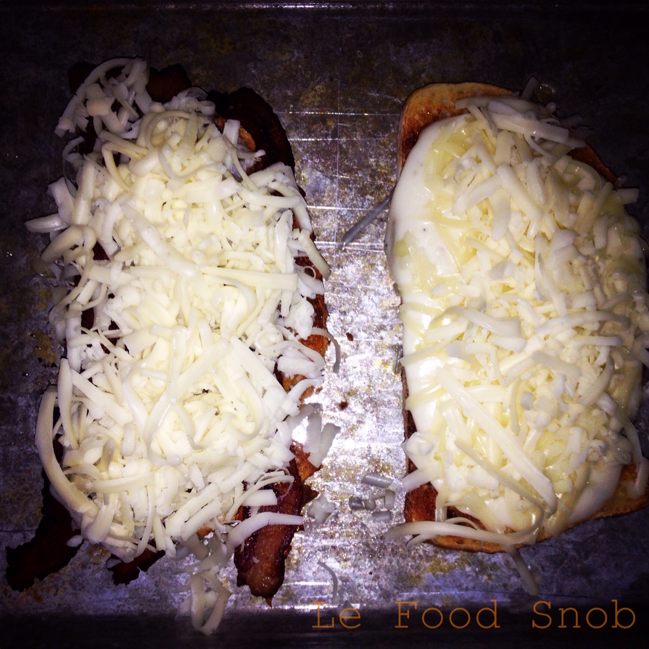 - Heat broiler to high. Place 6 slices bread on a parchment paper-lined baking sheet, and spread 1 tbsp. butter over each. Top with 3 slices bacon and Gruyère. On the other six slices top with a generous amount of bechamel and additional grated cheese. Broil until cheese begins to bubble and brown, 3 to 4 minutes.