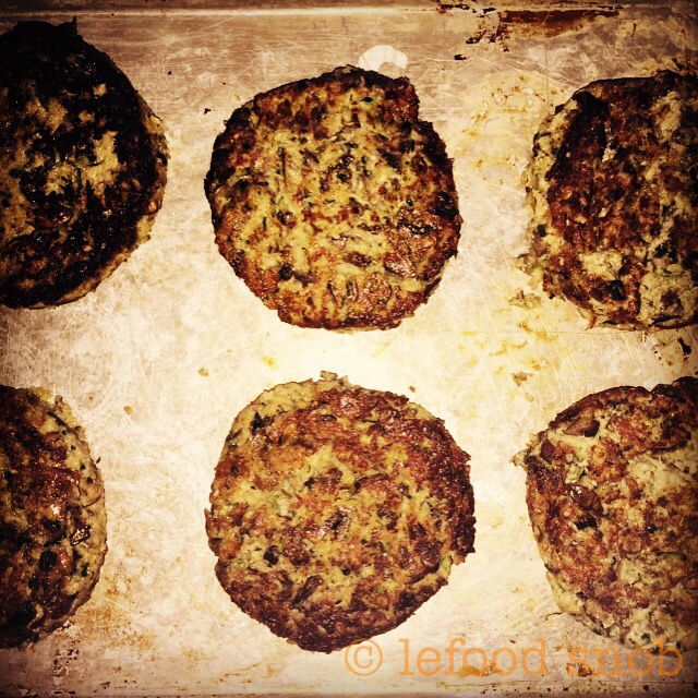 You may have to adjust the ingredients in this recipe. The recipe I followed from Bowl of Delicious called for one zucchini. I felt like I needed a bit more guidance so I guessed that it was a large or jumbo-sized zucchini and used 2 cups. That may have been a bit much. My patties looked nothing like the patties at Bowl of Delicious.