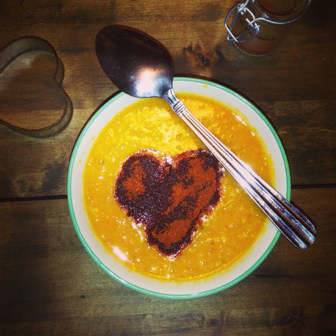 The main annoyance with this recipe is chopping up the veggies. Other than that you kind of throw things into the pot in steps and then let the pot simmer once you’ve added the lentils and 20 minutes later – Voila! You’ve got yourself some lentil soup (after you’ve blended half the ingredients and then poured them back in).