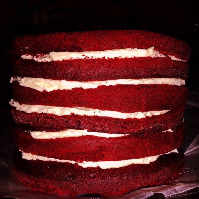 Still, I made my own cake for my birthday and brought into work the first year (and plan to do so again this year). But I also make birthday cakes every year for my coworkers. My manager’s birthday is at the end of June, approximately two weeks before mine, and (two years in a row now) when I asked for her flavor request she requested red velvet with cream cheese frosting.