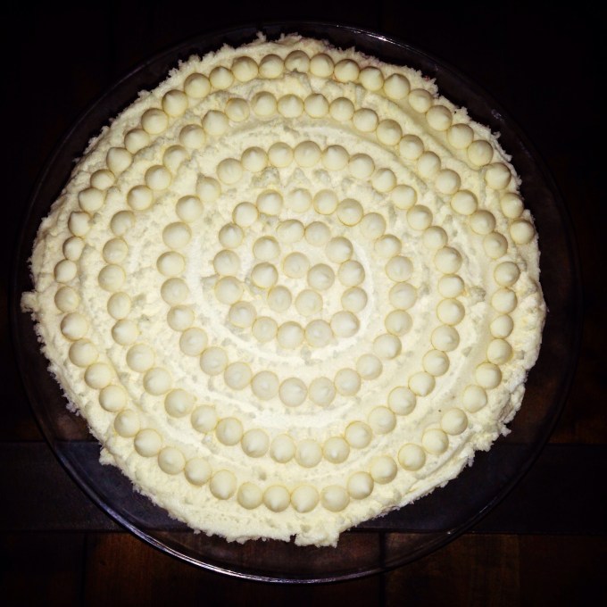 Frosting recipe adapted from one found at thekitchn.com. Note that you may want to make a bit extra frosting. I ran our of this frosting before finishing the cake! However, I have a heavy hand when it comes to filling the layers.