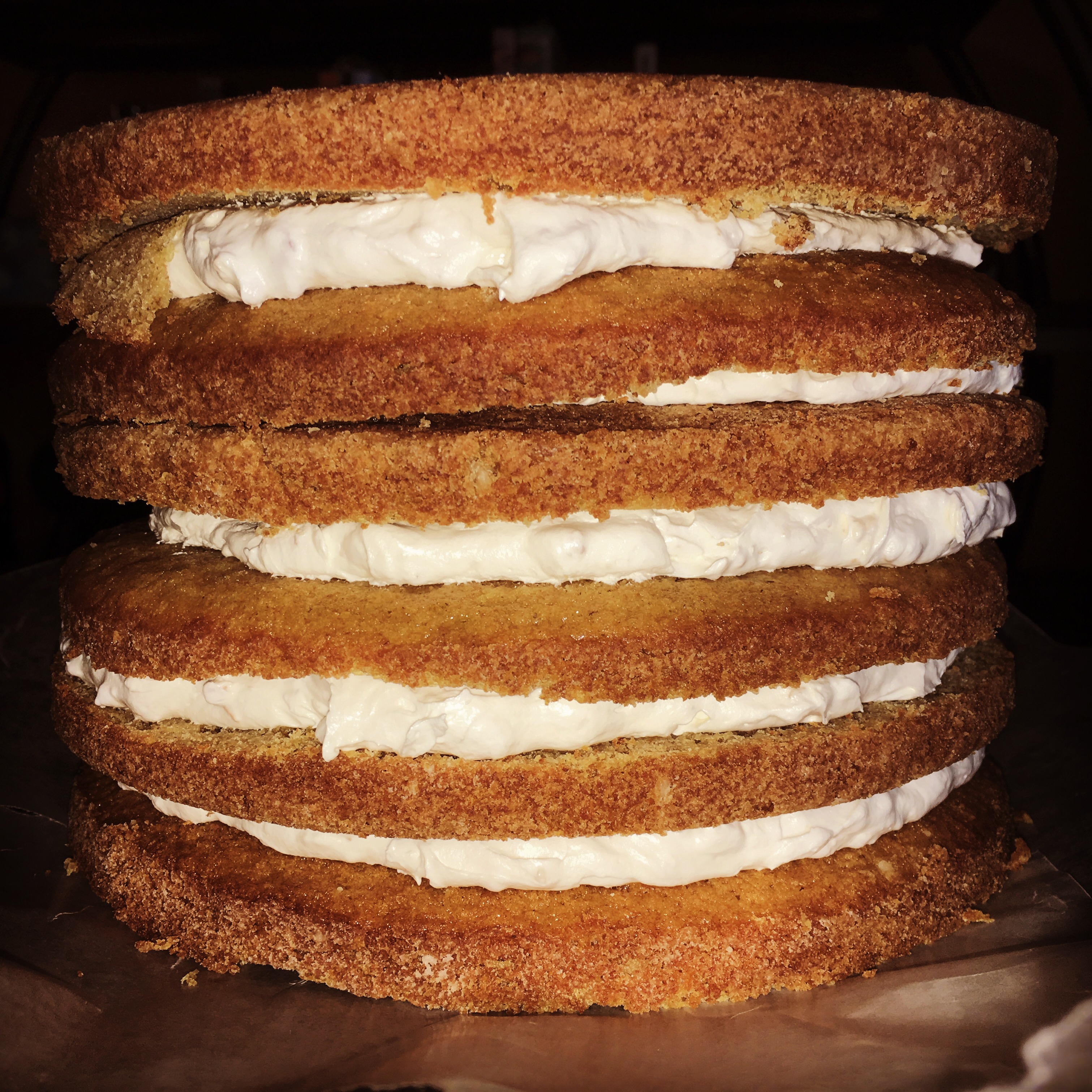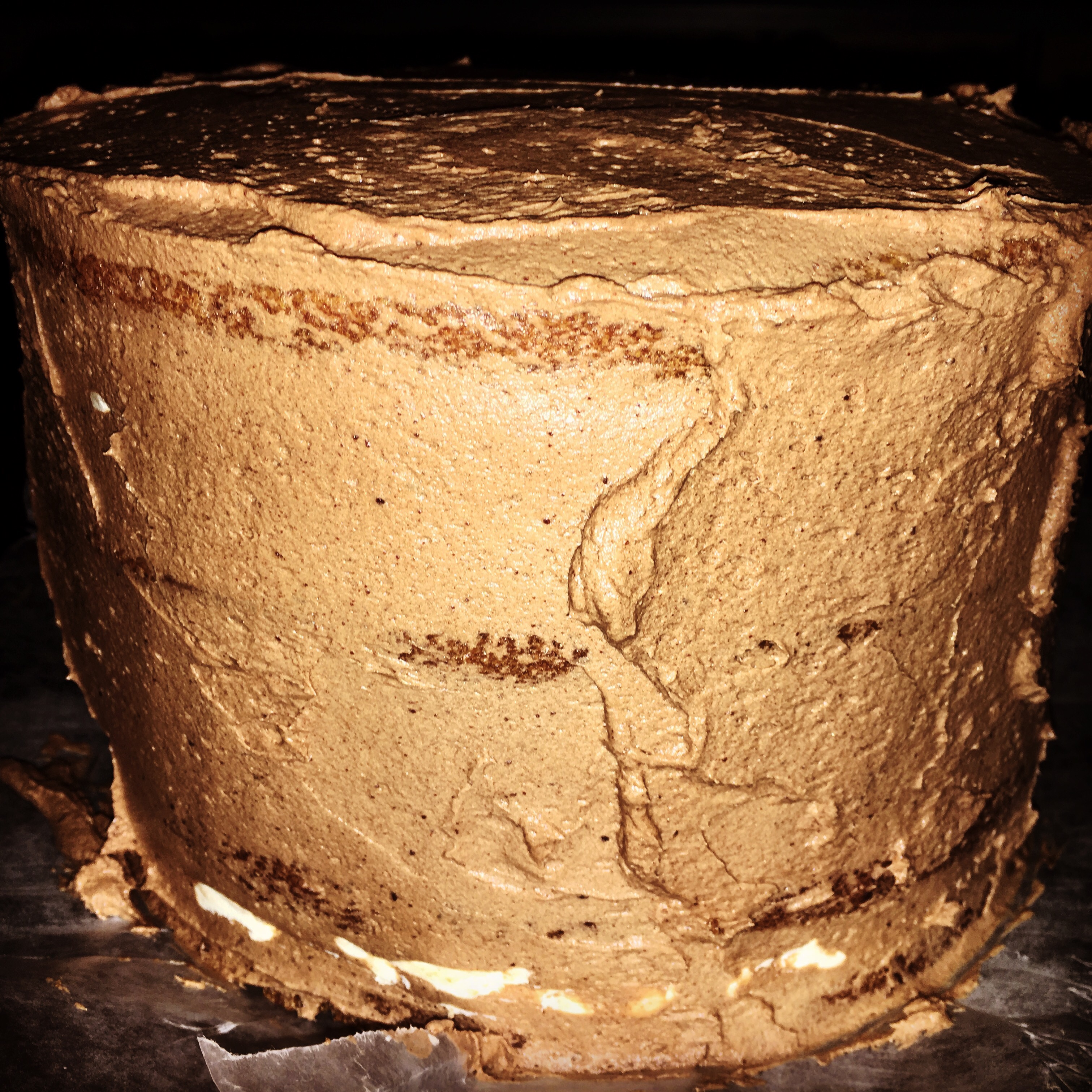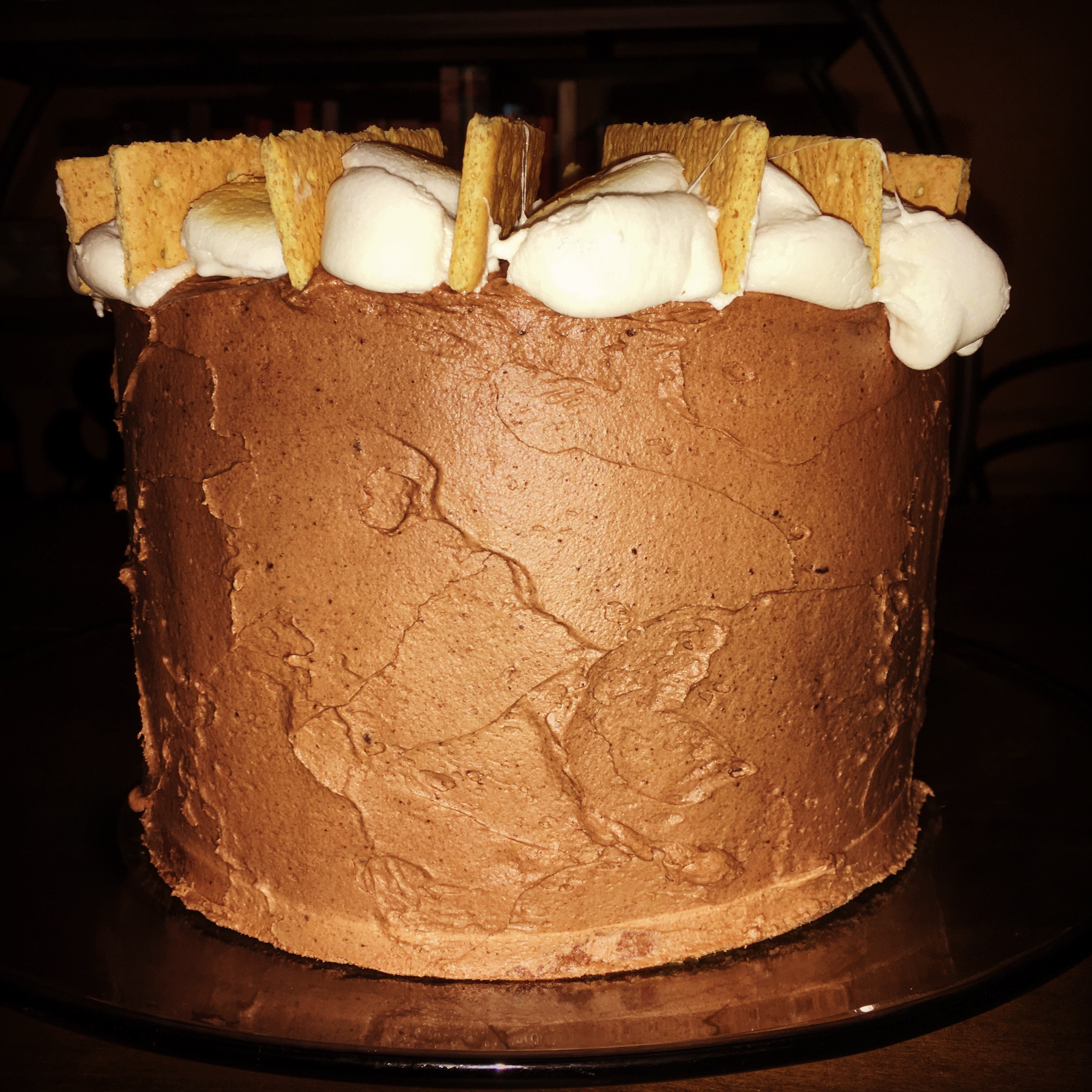 This is a putzy cake. It’s two different frostings (the frosting and filling) and the ganache I made was putzy as well. I wanted toasted marshmallows on top my cake. And I wanted bits of graham cracker stuck into the frosting.