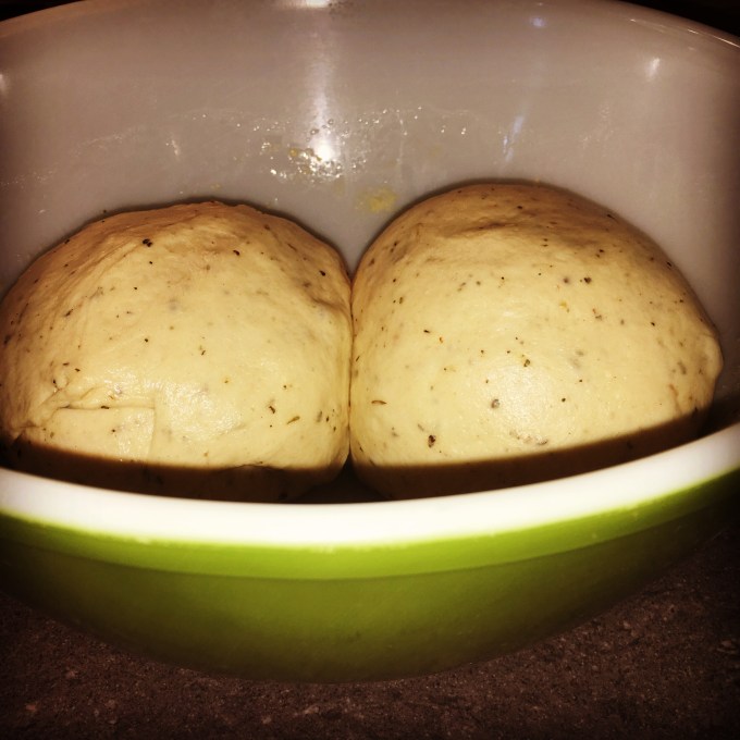 - Place the dough in a lightly-greased bowl, cover with plastic wrap and leave in a warm place for about 1 hour or until doubled in size. You can cover and refrigerate overnight at this point if desired.