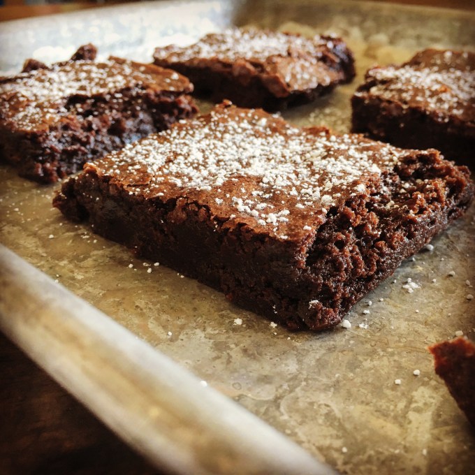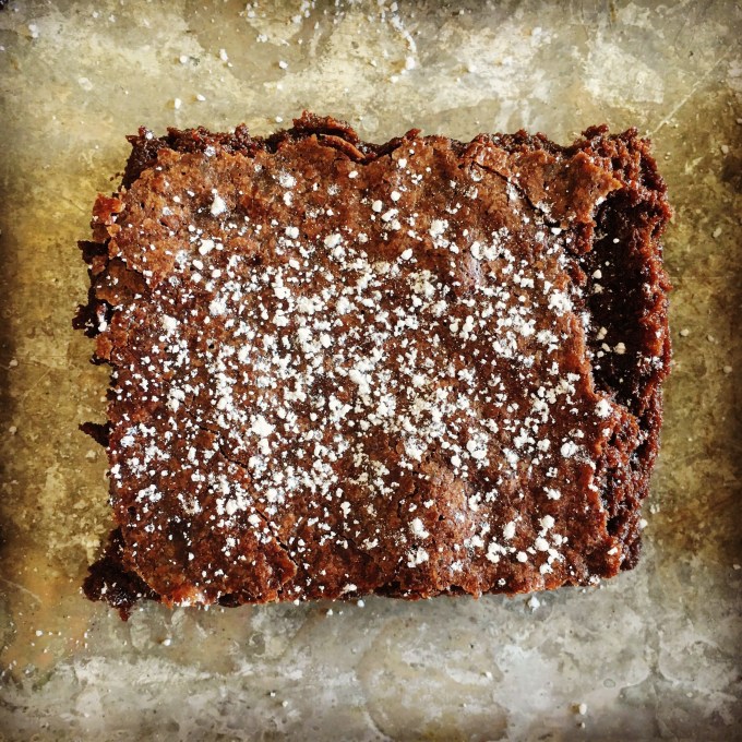 There’s something about brownies that intrigue me. I’ve tried many a recipe in search of the perfect brownie, but admittedly, I don’t know what the perfect brownie looks like to me. I don’t think I’m in love with cake-like brownies. I like them more fudgy. At the same time I like when the brownie crusts over on top. This brownie has both.