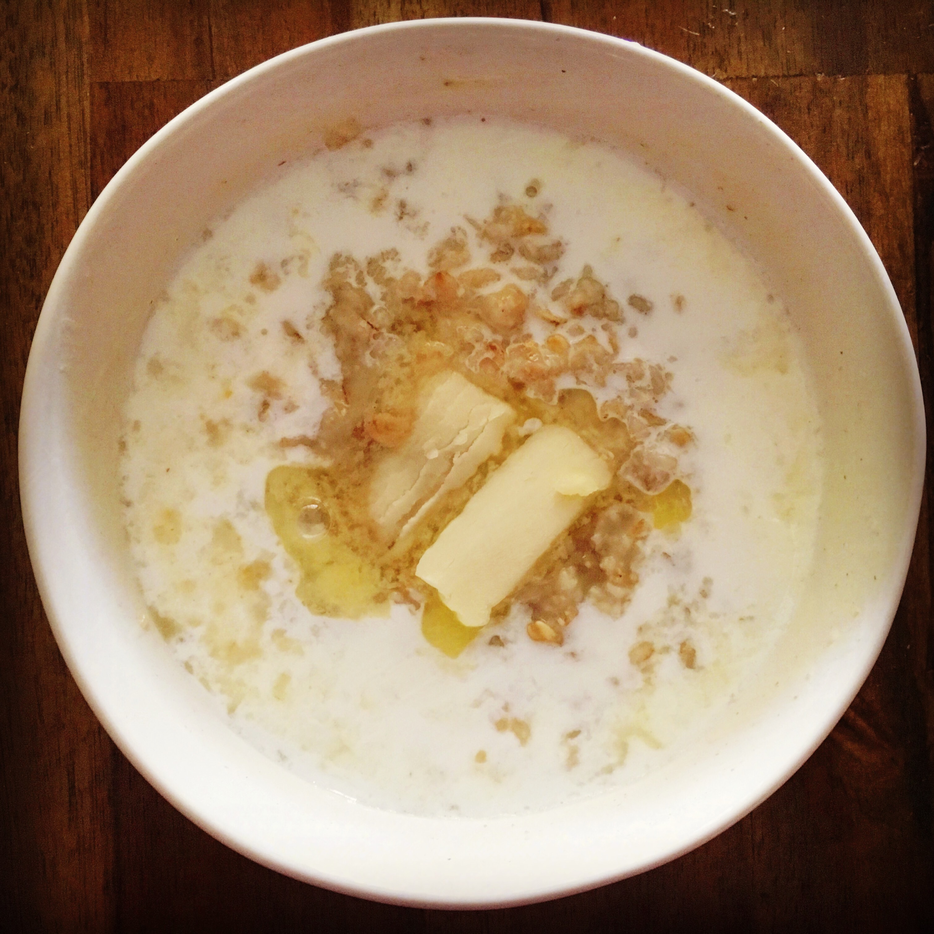 I digress. After eating garbage all week long I began dreaming about eating healthy food to compensate. I will admit that it’s easier for me to eat something healthy if I feel like it’s also slightly indulgent. So I began dreaming about food that would be both. I came up with this oatmeal recipe sorta based on the fact that oatmeal was served for us the last day of our conference (with all sorts of toppings to dress it up) and the fact that oatmeal drowning in butter, brown sugar and half-and-half was described in a book I began reading on the flight home. It seemed like Kismet or some sort of sign for me to eat oatmeal, at the least.