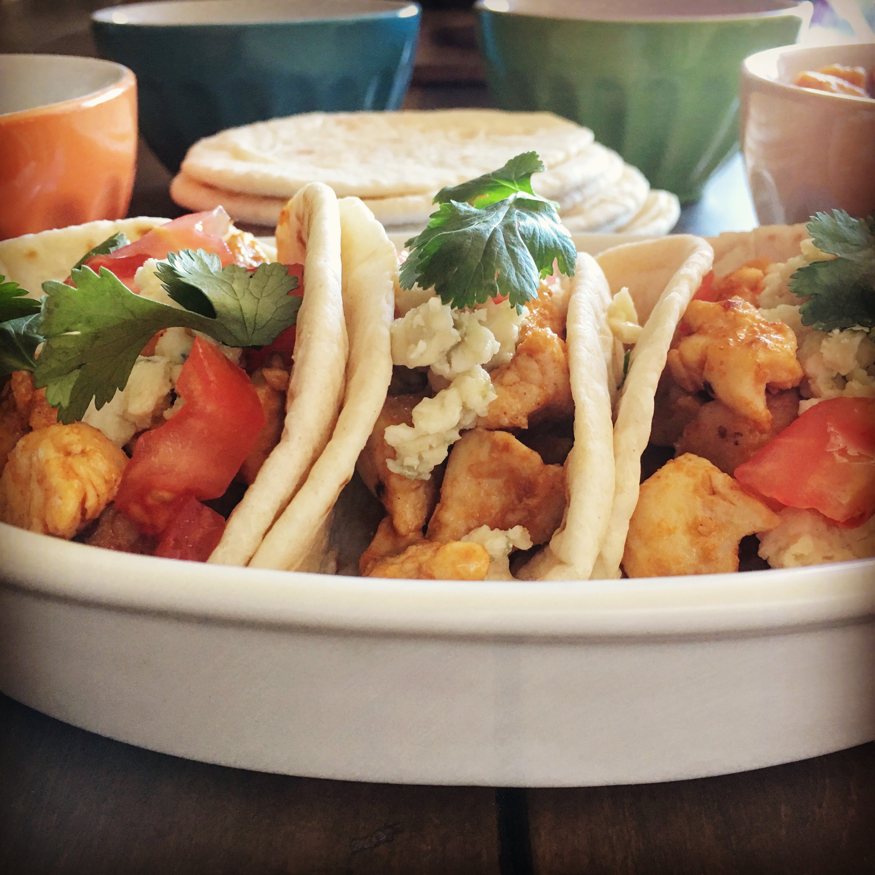 For some reason I got the idea in my head that buffalo chicken would make an excellent taco. I figured it would be spicy and hot enough that even if my taste buds still weren’t up to par that I would be able to taste them. So I found a couple of recipes on the internet for buffalo chicken tacos and kind of came up with my own really easy recipe. Really. It was really easy.