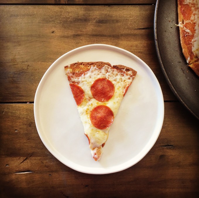 While I messed up considerably on the crust by putting too much cream cheese in it, I still loved the concept of the pizza and liked the pizza a lot. The crust is super thin so if you’re a fan of thin crust pizza you would like this crust. I found the pizza even better the second time I heated it up on my Pizza-pizzaz because the crust got even crispier. You want a crispy crust because otherwise your slices will wilt considerably.