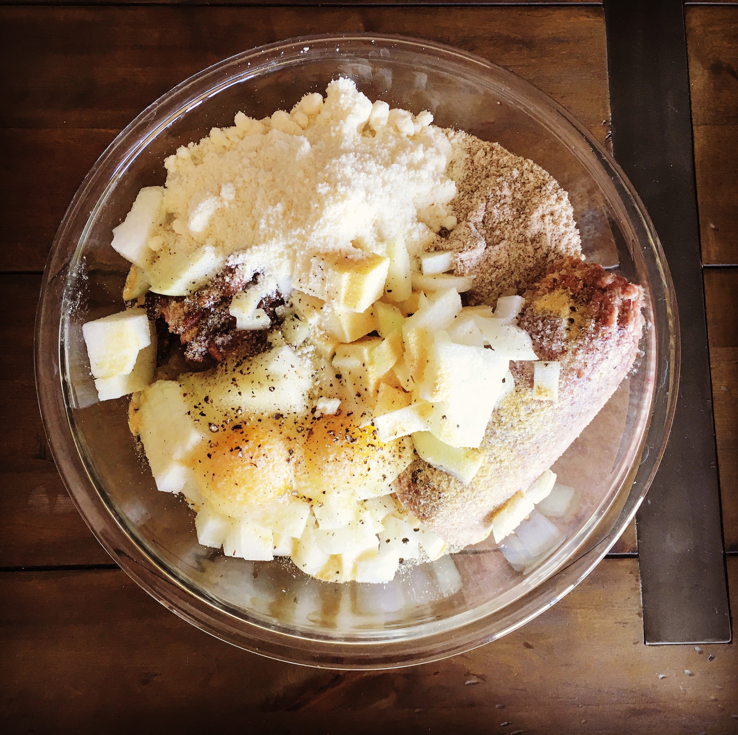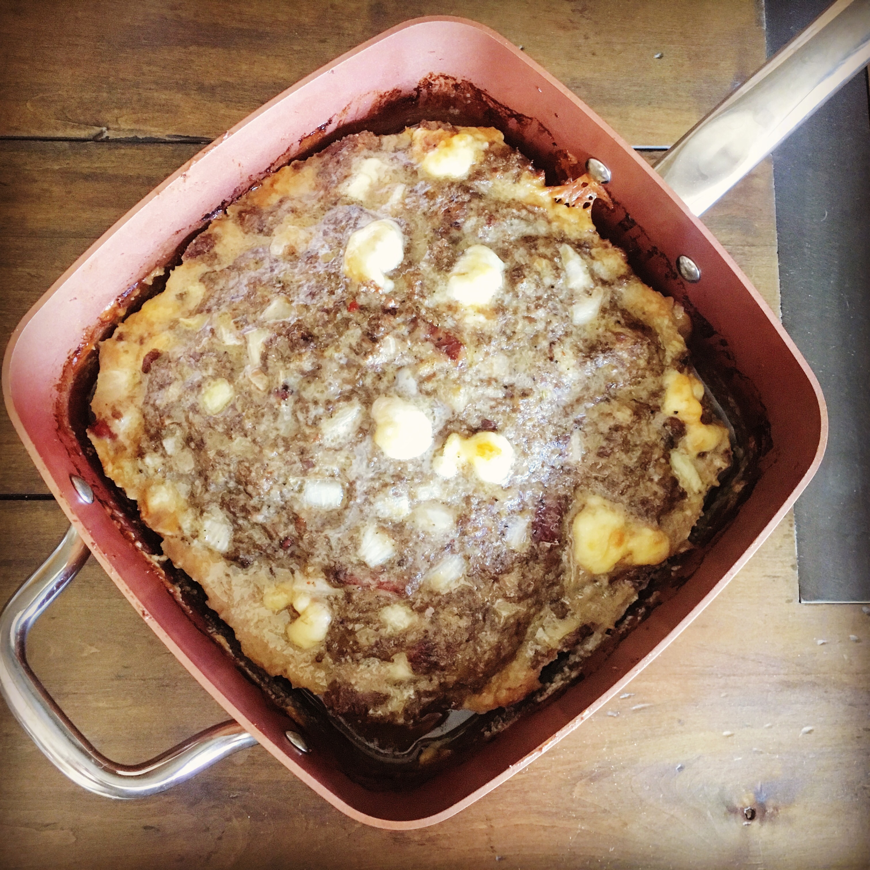This recipe is inspired by the last low-carb meatloaf I made. Instead of mushrooms and mozzarella I added bacon and white cheddar cheese.