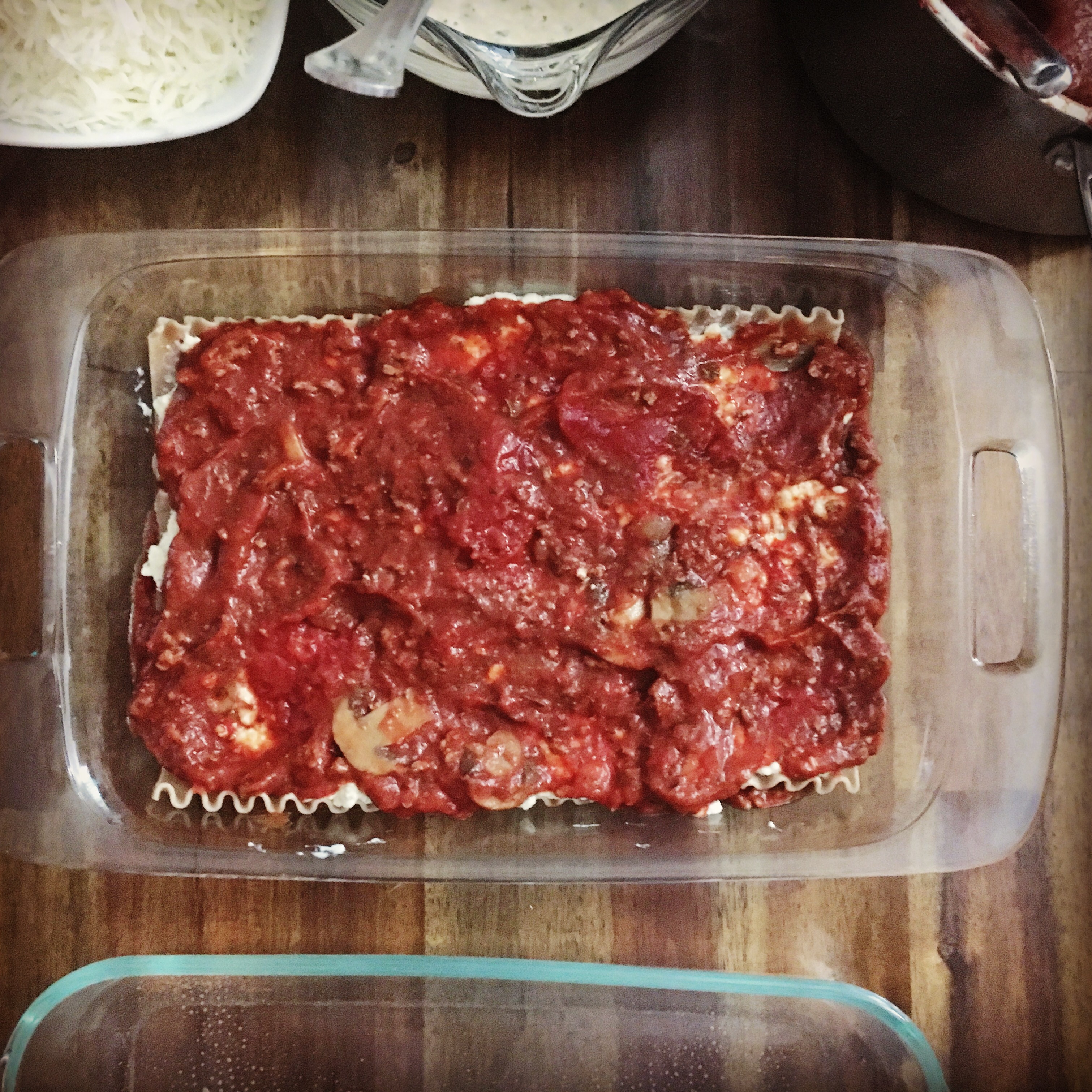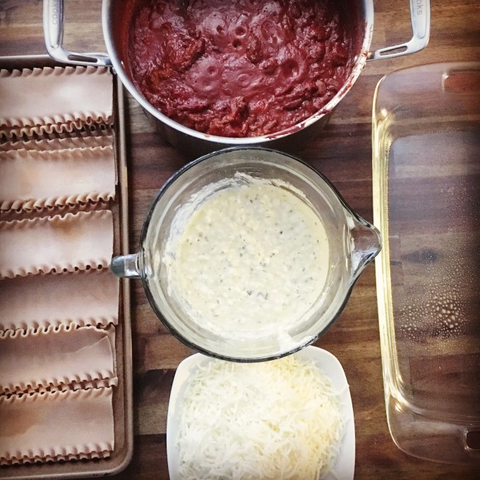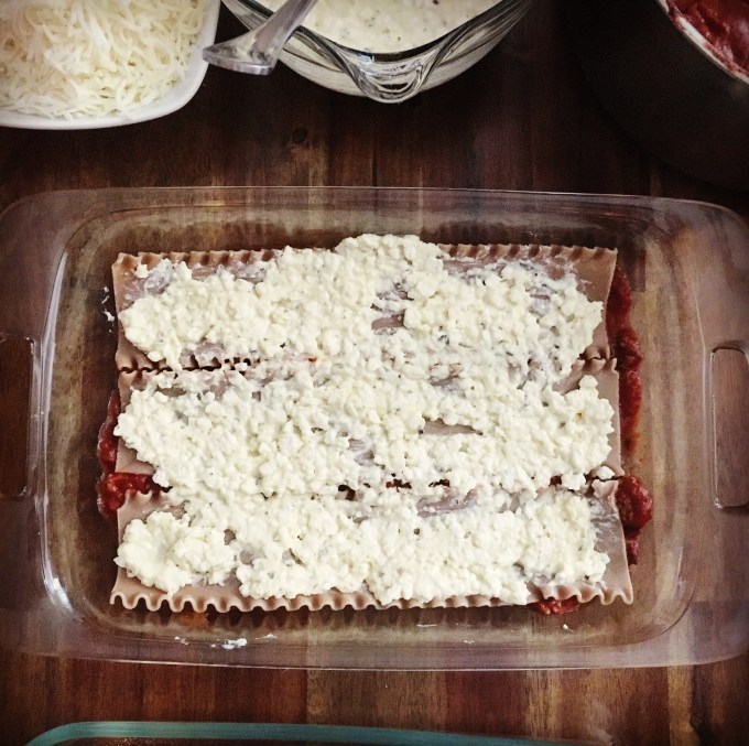 - 1 box whole grain lasagna noodles, cooked and drained well (put on wax paper to keep from sticking