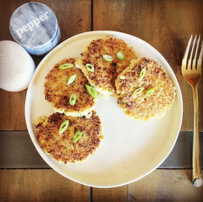 Every time I buy cauliflower (or rather cauliflower rice these days) I get grandiose thoughts of doing something cool with it and then sort of forget that the cauliflower is even in my refrigerator. I guess I must not find cauliflower all that exciting when you get right down to it or I wouldn’t procrastinate on making cauliflower recipes.