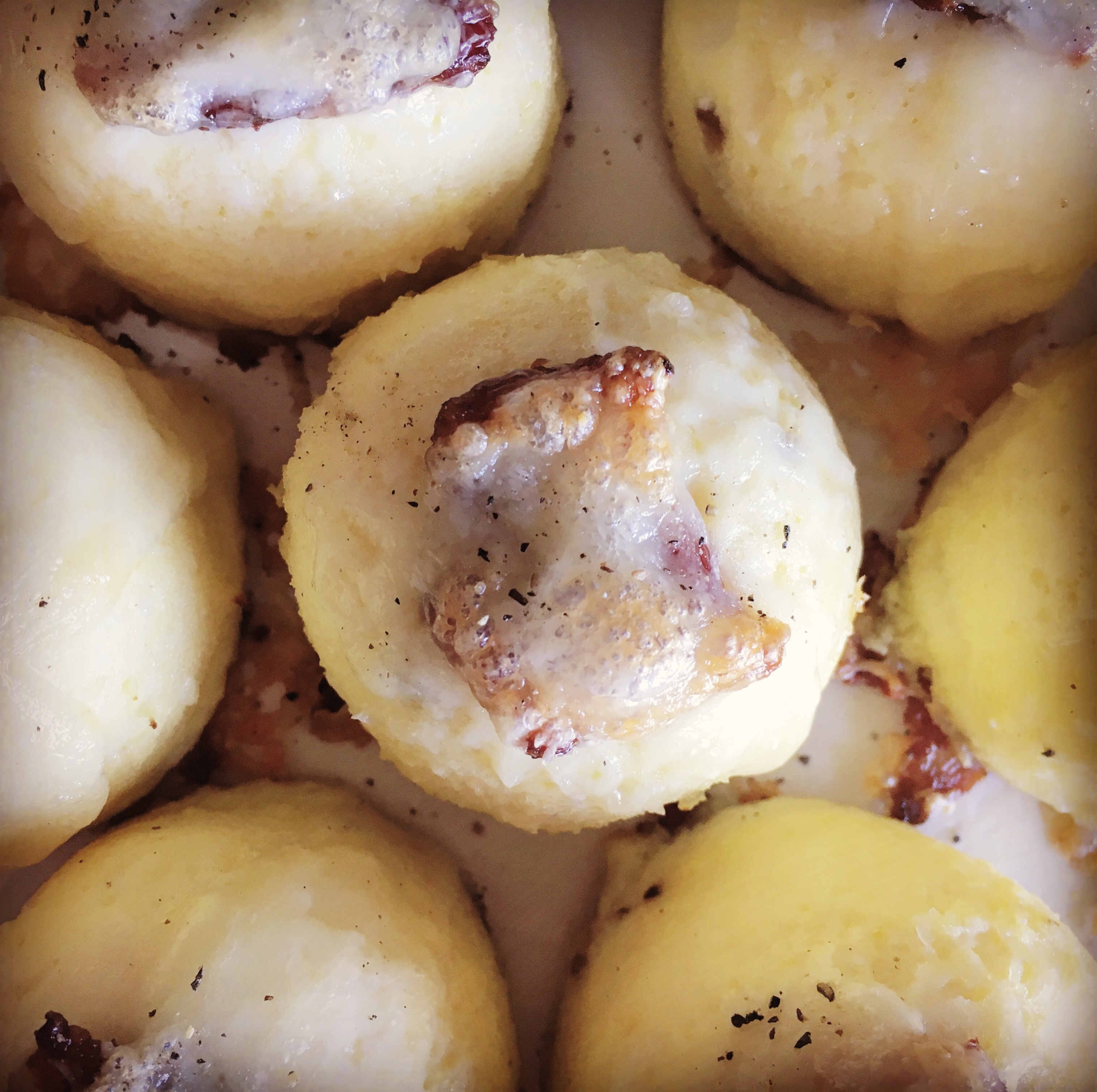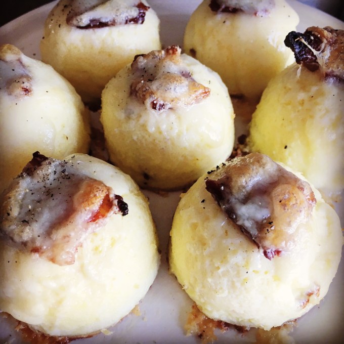 Onto the “container.” I started out making these babies in glass jars. It’s fine. They work fine. I mean the egg comes out looking anemic, not nice and browned like the Starbucks version, but they taste decent. Since I’m used to something slightly round, almost like half a ping pong ball or something, I wanted my bites to have the same general shape.