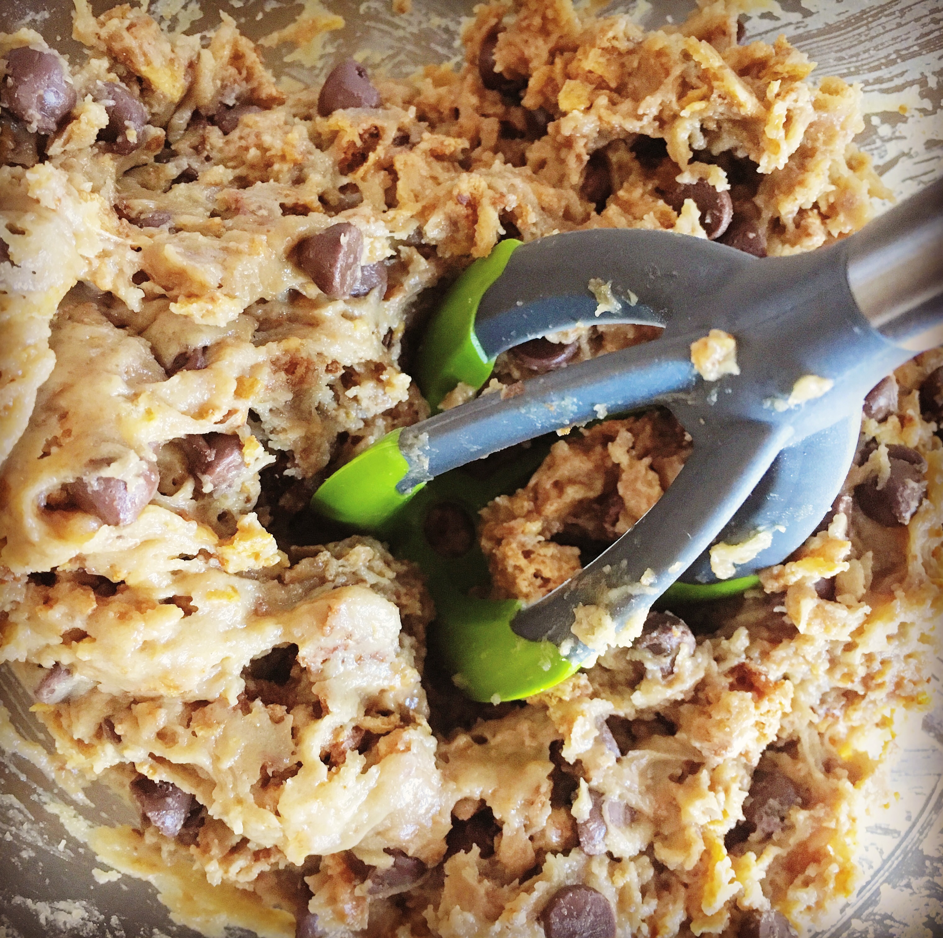 2. Whisk together the butter and sugar until combined. Add the egg, egg yolk, and vanilla, and mix until combined. Add the dry ingredients, and mix until just combined. Fold in the chocolate chips and cornflakes.img_5278