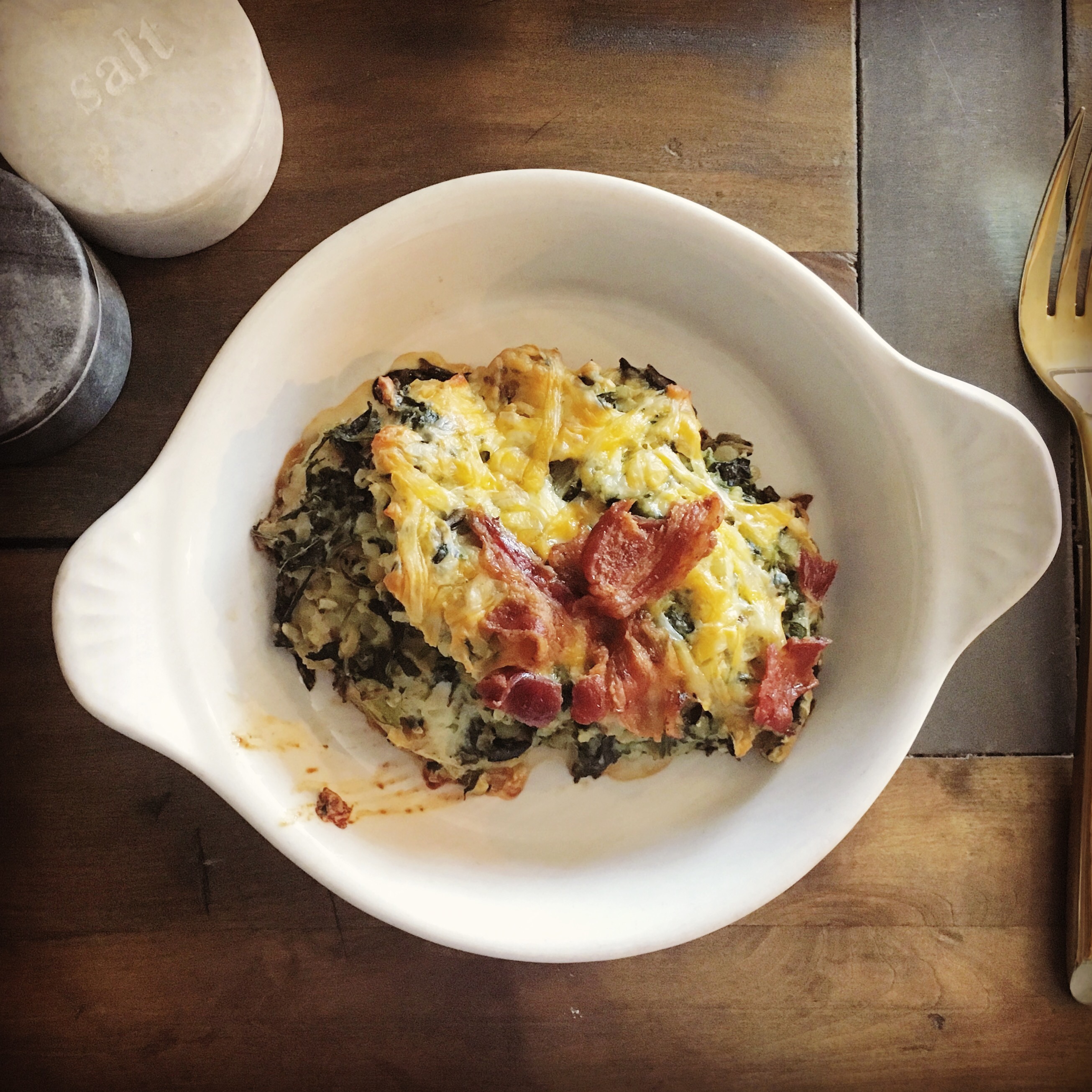 After the success I had a few weeks ago with making a broccoli rice cheese casserole substituting most of the rice for cauliflower rice, I decided to find additional casserole recipes to make “healthier” by adding cauliflower rice. There are probably not surprisingly a ton of options out there. I decided to try to go with one that snuck some spinach into the mix and found the perfect looking recipe at Food Network. My adaptation is below.