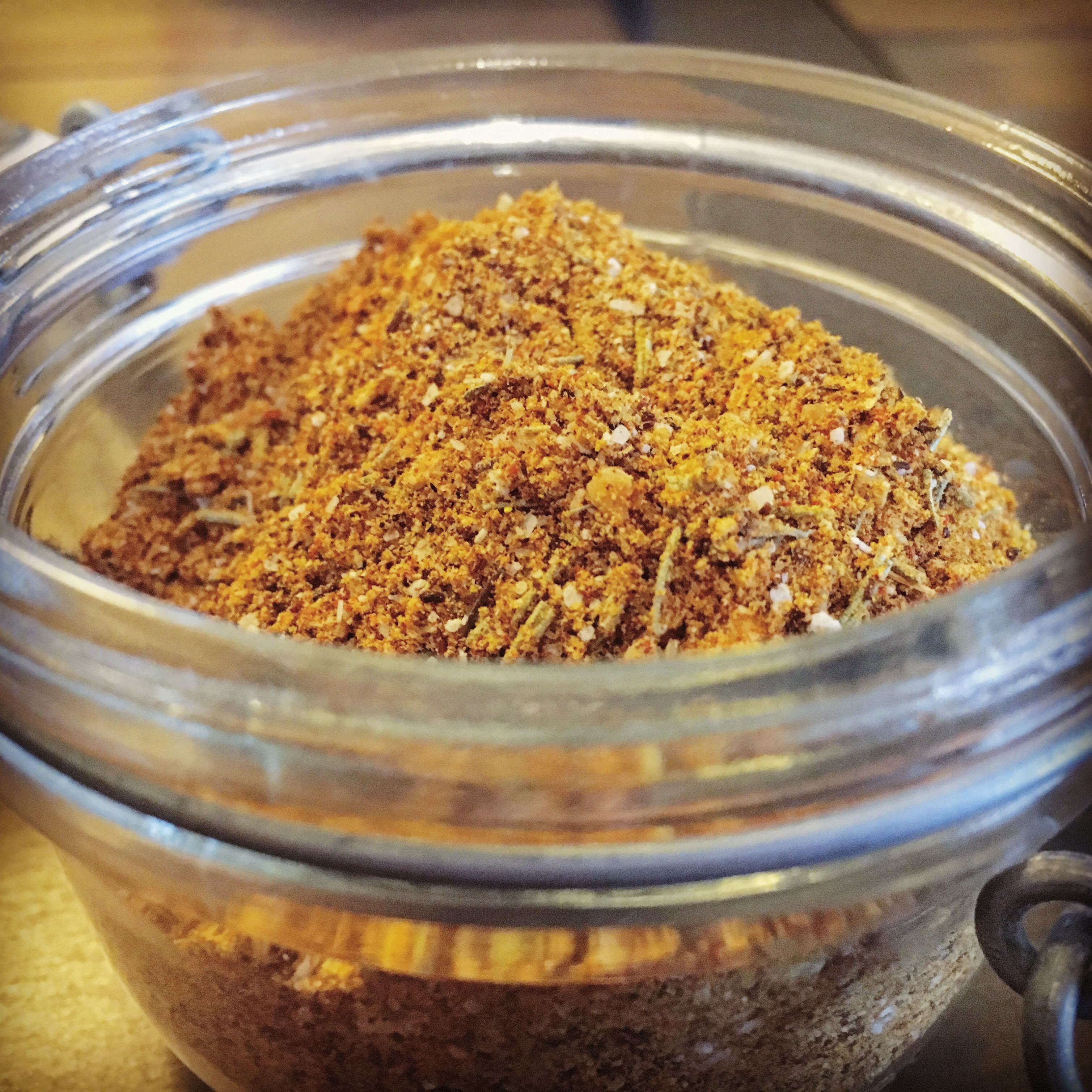 The rub couldn’t be easier to make. Just mix the ingredients together and store in a jar until you’re ready to pat it onto your meat.