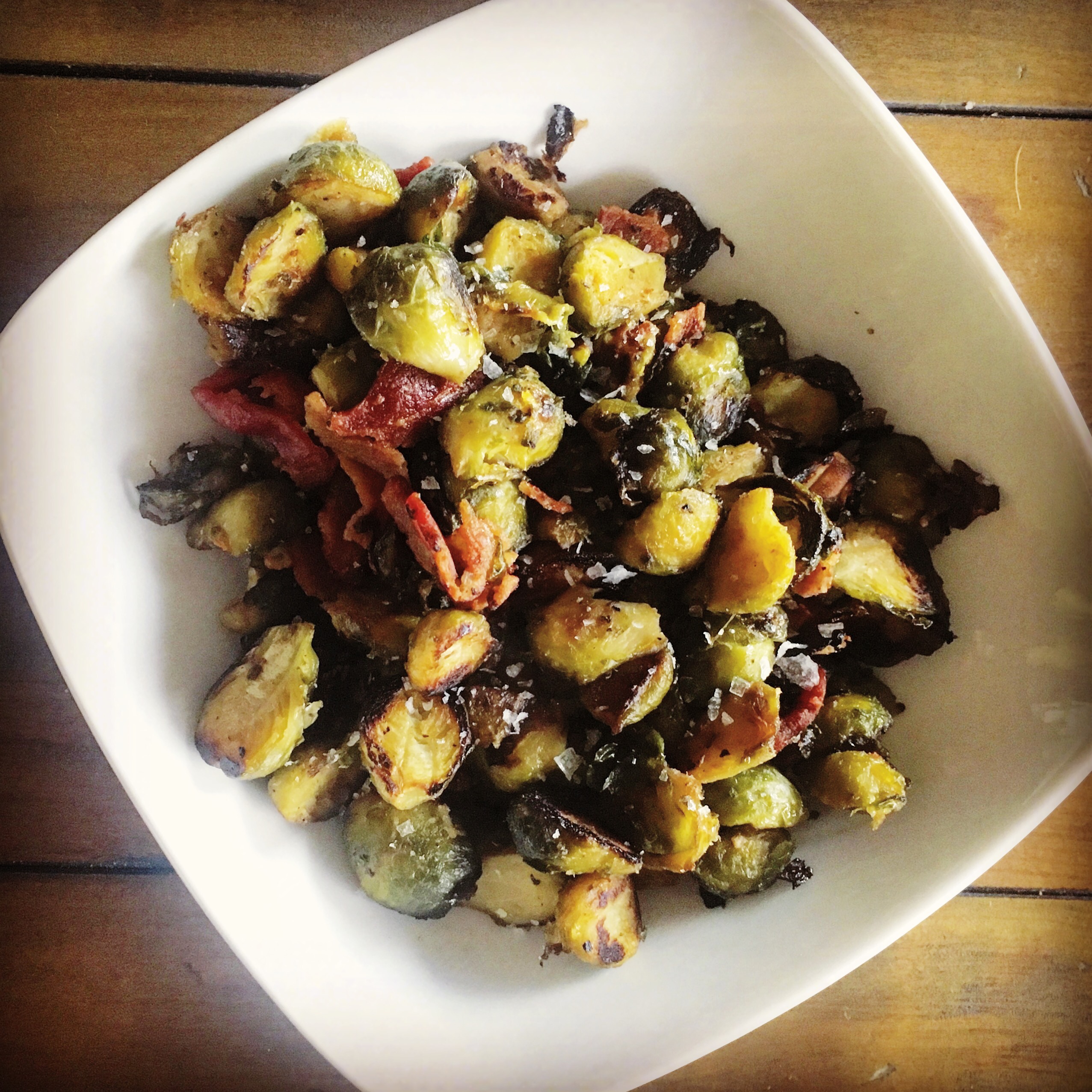 When all was said and done, I found that the Brussels had little to know maple taste. I only used one tablespoon of syrup but found myself oddly disappointed that I didn’t get much of the flavor of all three tastes (Brussels sprouts, bacon and maple). That being said, the dish was still really good. I reheated it the following day and accidentally burned it a bit in the oven. I found I liked it even more!