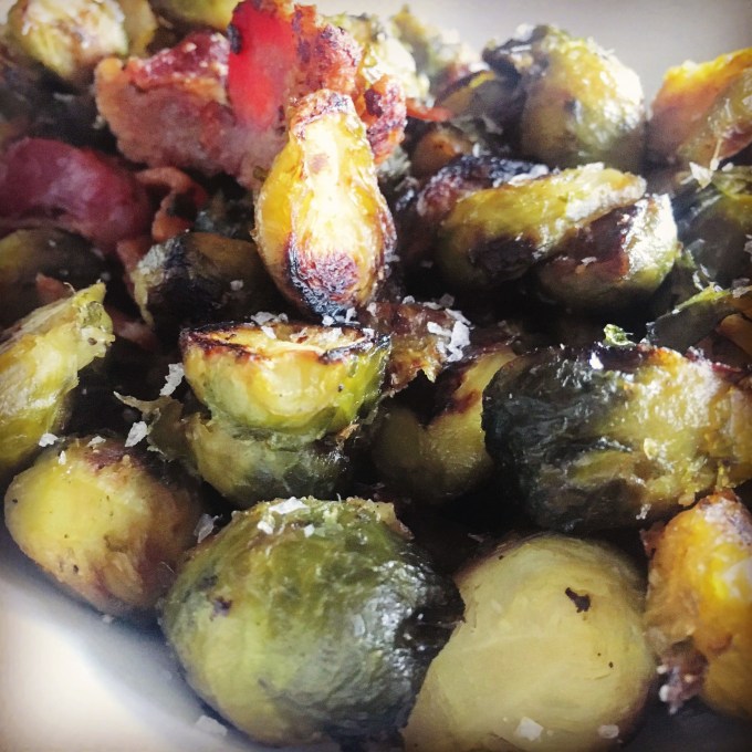 So I found this recipe for Brussels sprouts and bacon that contained Maple Syrup at Lexi’s Clean Kitchen. I admit I was both intrigued and repulsed at once. I get that maple and bacon can go together. And bacon and Brussels sprouts can go together. But all three? Now that’s a mind bender. But I decided to give it a whirl anyway. See my take on Lexi’s recipe below.