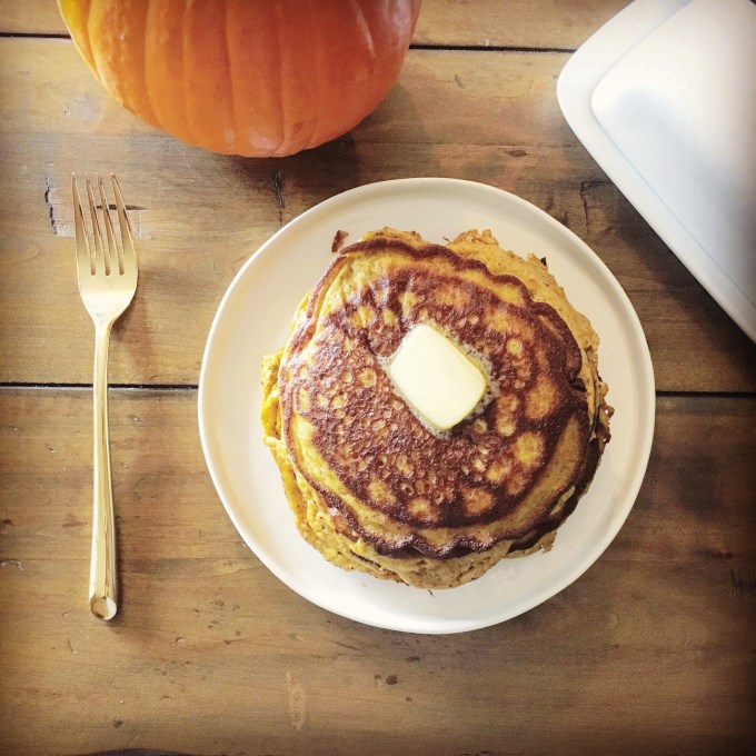 So I’m going to warn you that this is not the most technically sound recipe for pancakes. I based this recipe off of one that is vastly different than mine only because when I tried following the recipe it just didn’t make sense. So I kept adding things until I got a decent pancake. That’s why you’ll see ½ to ¾ cup pumpkin puree instead of an exact amount.
