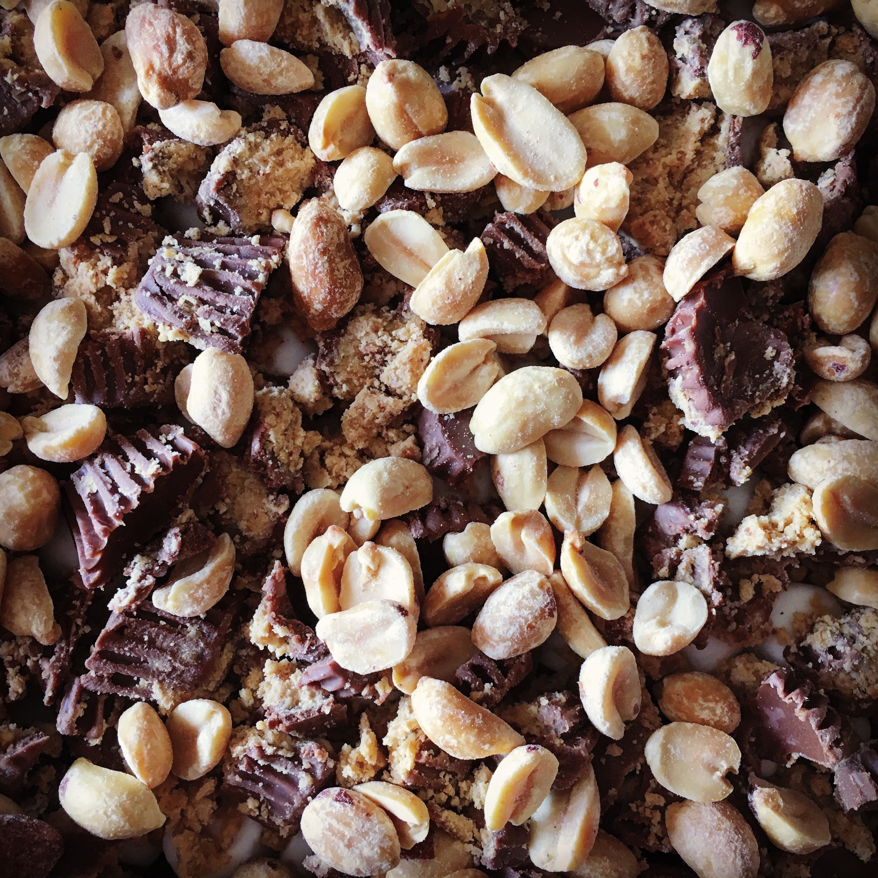 - 3 c. Reese’s Peanut Butter cups, crushed