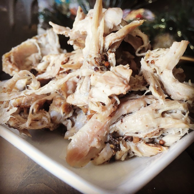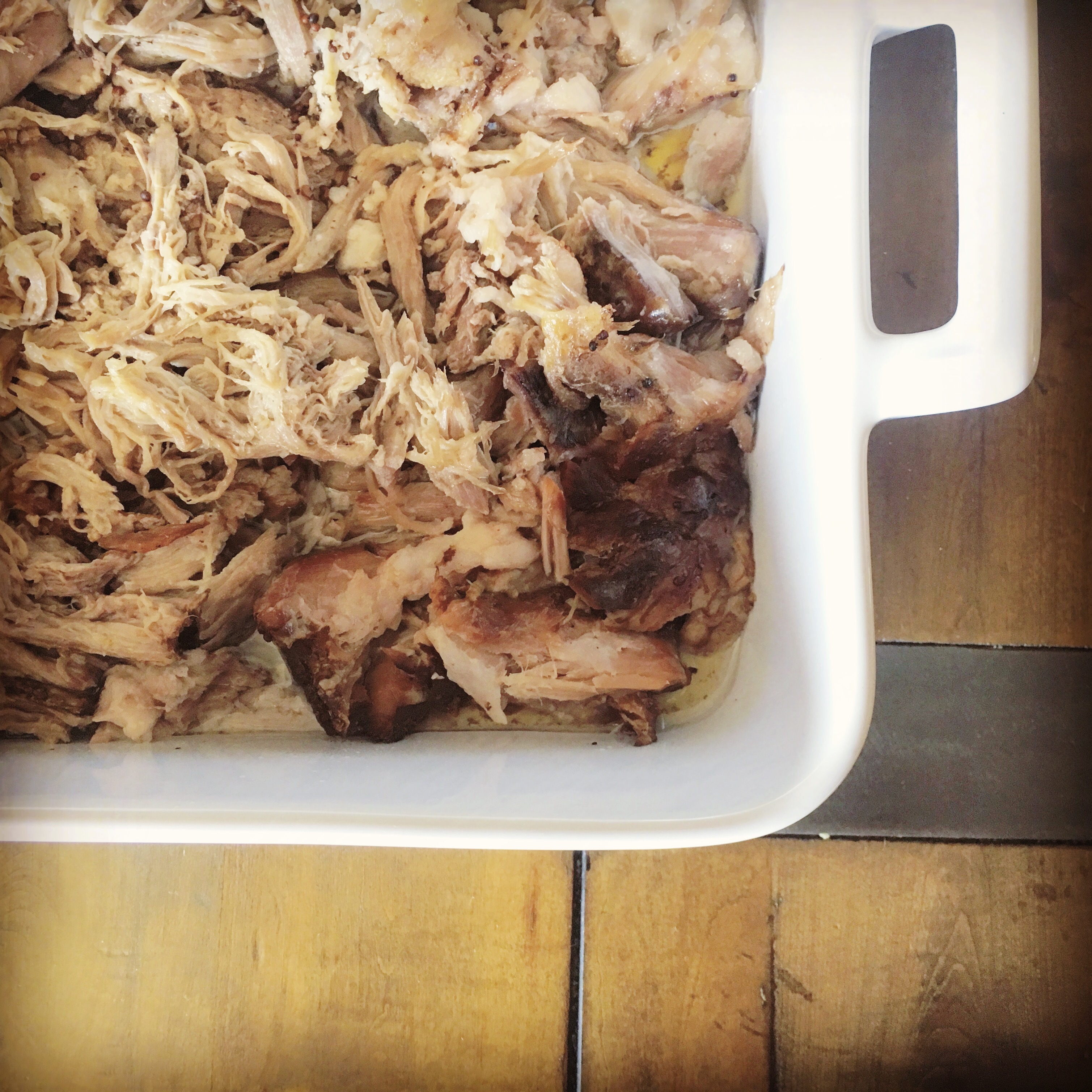 I didn’t get to eat much of this pork dish because it went primary for my dogs but the pieces I got to eat when pulling the pork and plating it for pictures was divine. I poured some of the pork sauce into the serving dish along with the pulled pork – the extra sauce is a nice addition.