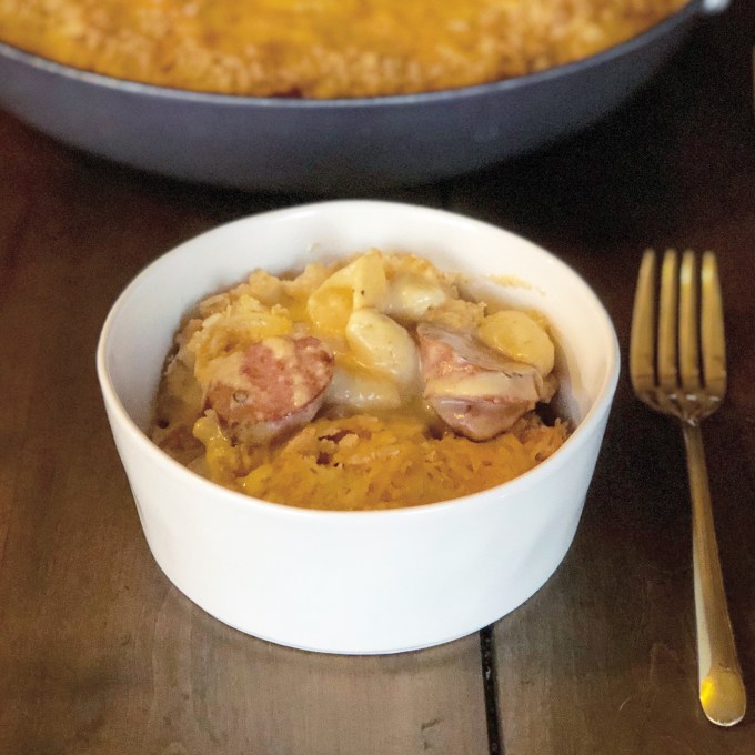 I based my recipe off one my grandma sent me for “Johnsonville Kielbasa Mac n Cheese” but kicked it up a notch by adding cheese and crushed crackers on top and baking it for a bit. It was dreamy, creamy perfect and slightly spicy: an overall hit at our Christmas dinner.