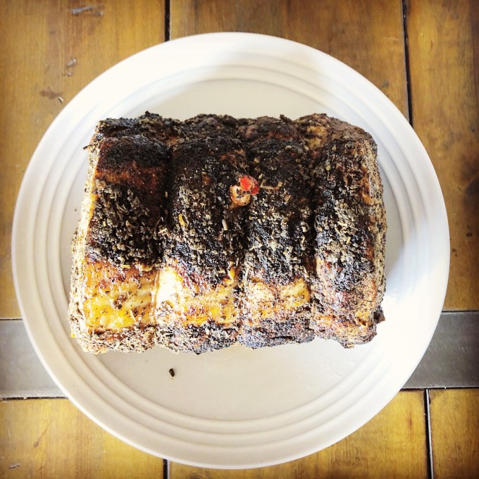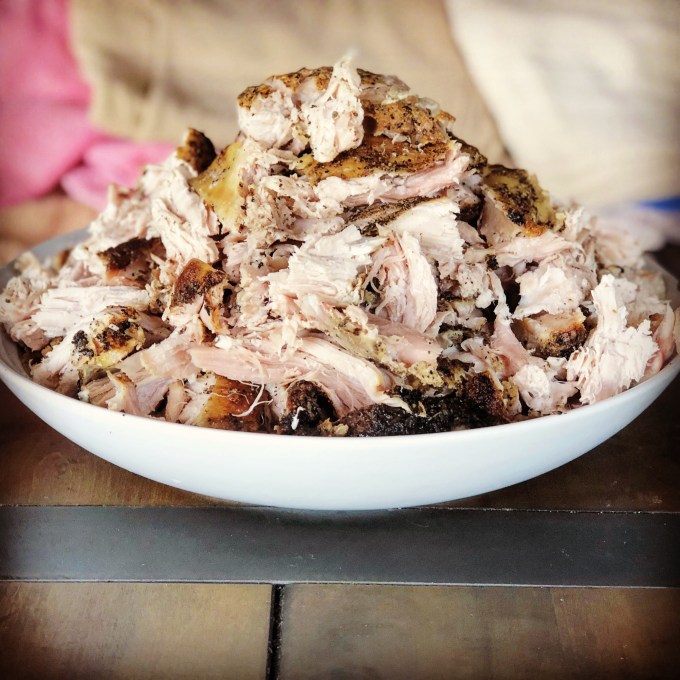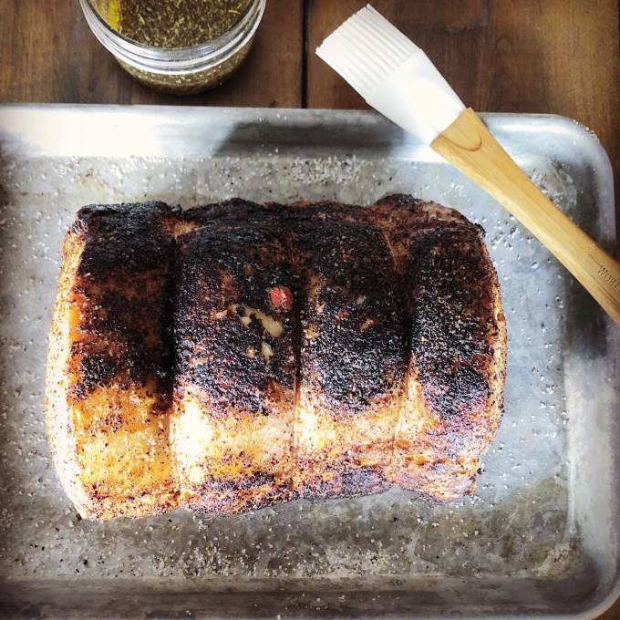 So when my dad bought a 4-pound bone-in pork loin the other day, I knew the pork was primarily for the dogs. Not that we can’t eat it as well, but you see my dogs are diva-esque. They are not fans of eating their dry dog food unless it’s hidden under some sort of decadent meat. And plain roast chicken from Costco wasn’t cutting it anymore so I needed to step it up a bit.