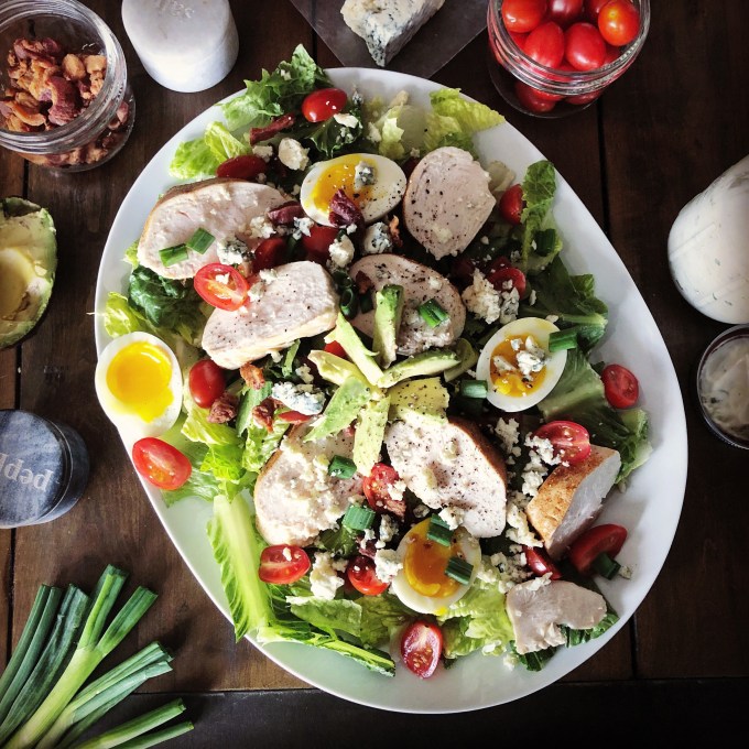 If ever there were a salad I could claim as my own, it would be the Cobb salad. And by “claim as my own” I mean it’s the only salad I continuously reach for. And by “continuously” I mean that I eat it a handful of times a year. at work when I forgot to bring my lunch and I’m desperate for something quick. (Our cafeteria has a pretty decent pre-packaged Cobb salad option!) Even though I’ve made a few salads at home over the years, I’ve never made this salad. Which meant it was high time to do so.