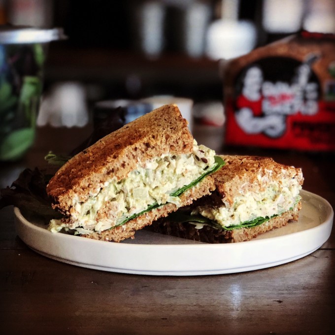 I wasn’t planning on making a chicken salad sandwich today. I was, in fact, looking for a recipe for chicken salad that I could put on a salad. And that’s the exact recipe I found at a website called eatingwell.com. The more I thought about it, the more I felt the chicken salad would taste extra delicious on some toasted bread as a sandwich instead. I could always have a salad on the side, I reasoned.