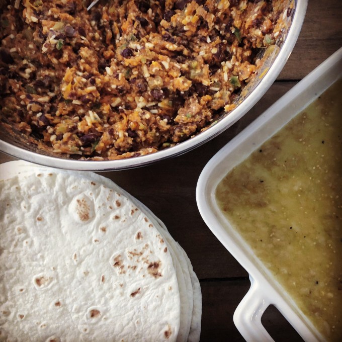A few weeks back I was at my friend’s coffee shop and we were discussing types of dishes she could cook for her house guests. She’s vegetarian and so are they. She wanted something that made a big portion because there were several mouths she would need to be feeding. So I suggested some sort of vegetarian enchilada dish and found a recipe at Cookie and Kate that looked AMAZING. It took her a second of glancing at the pictures to decide to make the recipe for her house guests. And I knew immediately that I wanted to make the recipe too. She got to it before I could and gave it excellent reviews and sent me a bunch of pictures as she was cooking. That next weekend I rounded up all the necessary ingredients and made a huge batch of black bean and sweet potato enchilada’s based on the recipe found at Cookie and Kate.