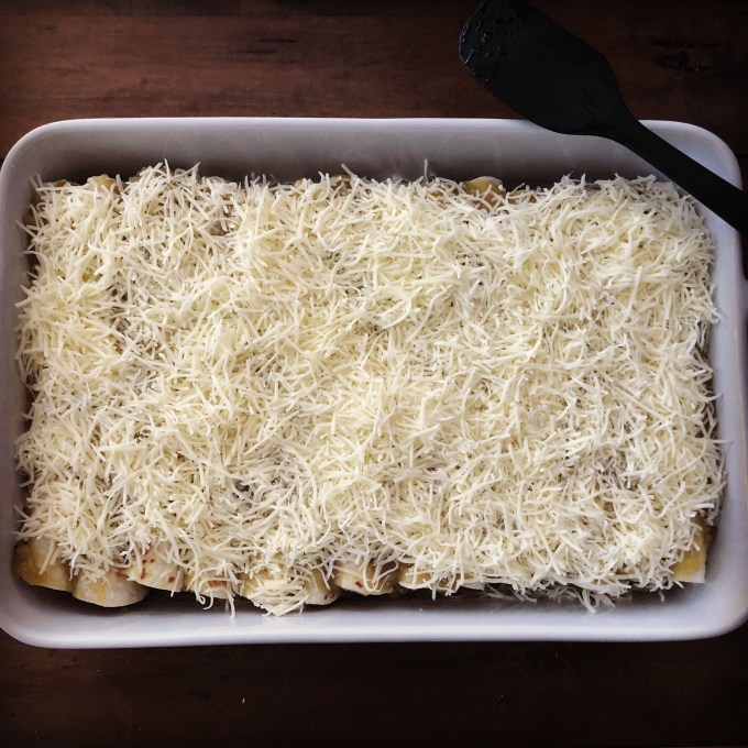 As you can see, this made a ginormous amount of enchiladas. I was good for about one or one and half enchiladas in one sitting. I ate this all week and had leftovers I had to throw away. My preferred method for reheating this dish is in the oven. It seems to work better to heat it uniformly (versus the microwave). I reheated at 350 degrees, covered, for about 25 to 30 minutes.