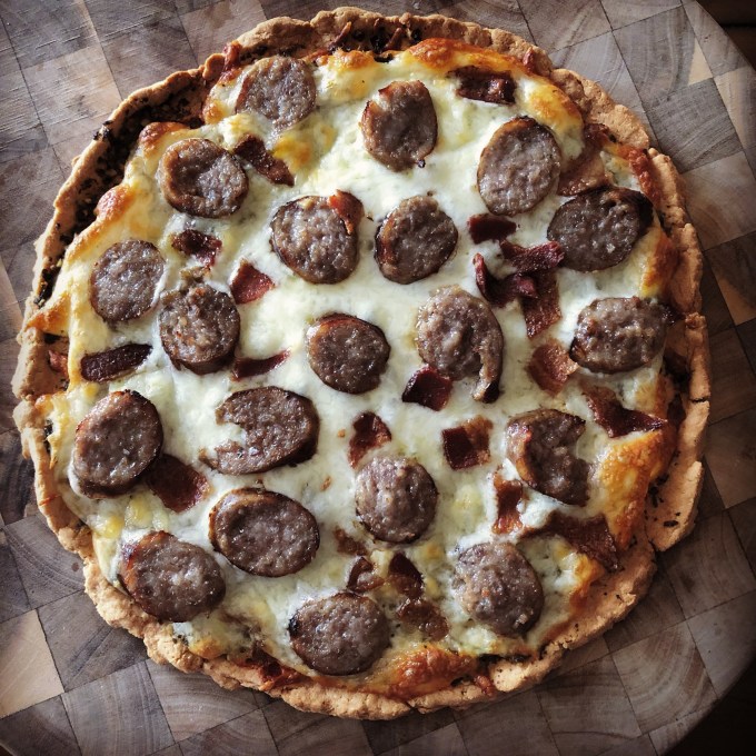 But then I came across the website gnom-gnom which is dedicated to keto and gluten free recipes and realized there’s more to the low-carb world than just cheese-based breads, rolls and pizza crusts. Paola taught me that you can make most gluten-full recipes with a combination of almond flour, coconut flour and xanthem gum. Happily I have all three on hand so I got to work making my way through some of Paola’s recipes, the first being 15-Minute Stovetop Pizza Crust though I skipped the stovetop part.
