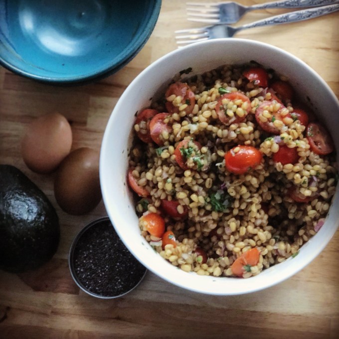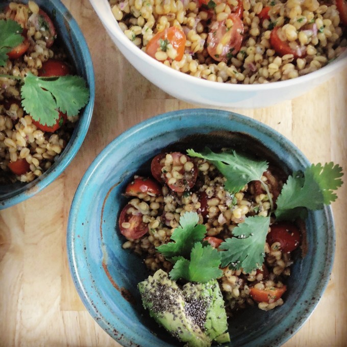 I informed Sis that this breakfast bowl is almost like a guacamole wheat berry bowl in flavoring with the red onion, avocado and tomato and she agreed. We both agreed we would make this dish again.