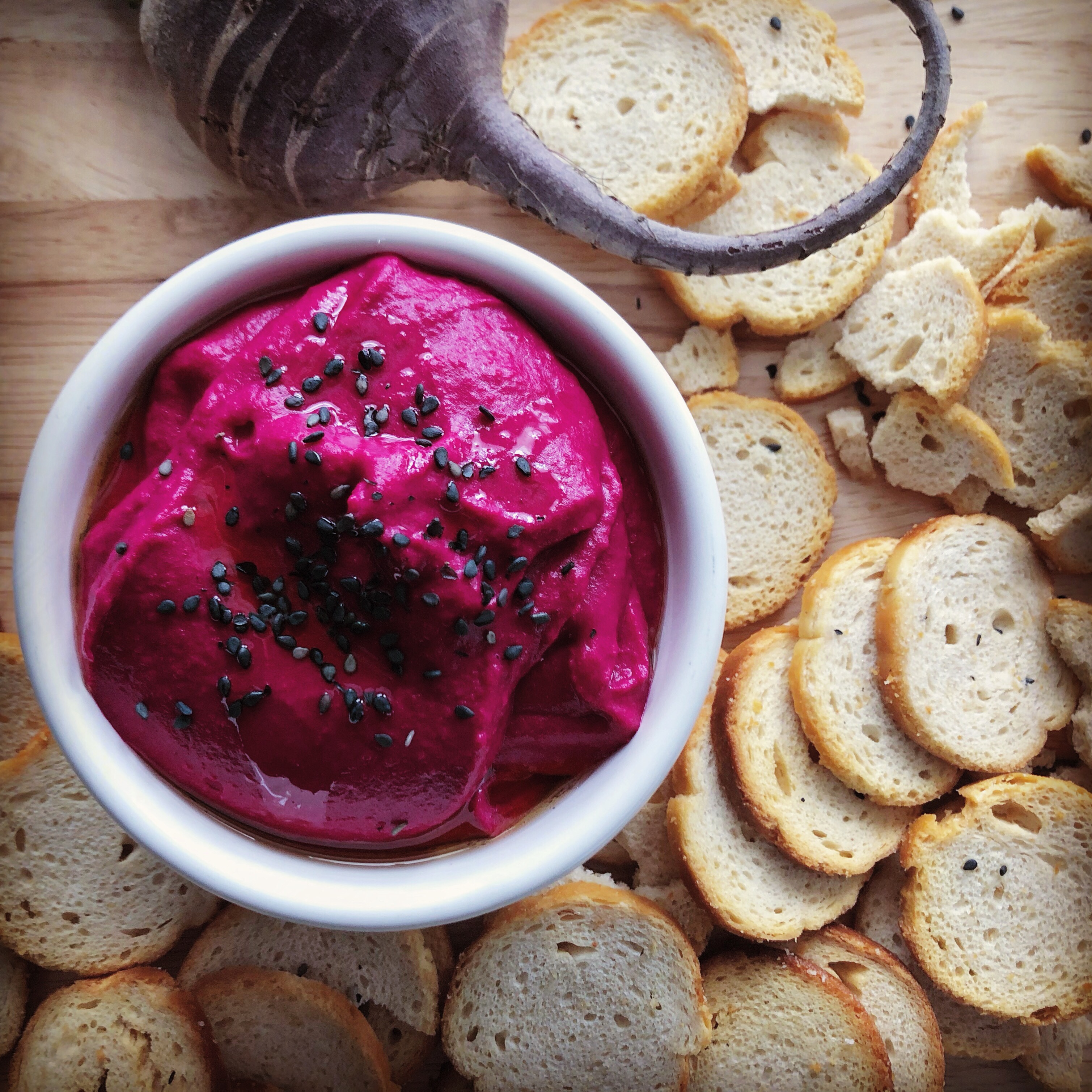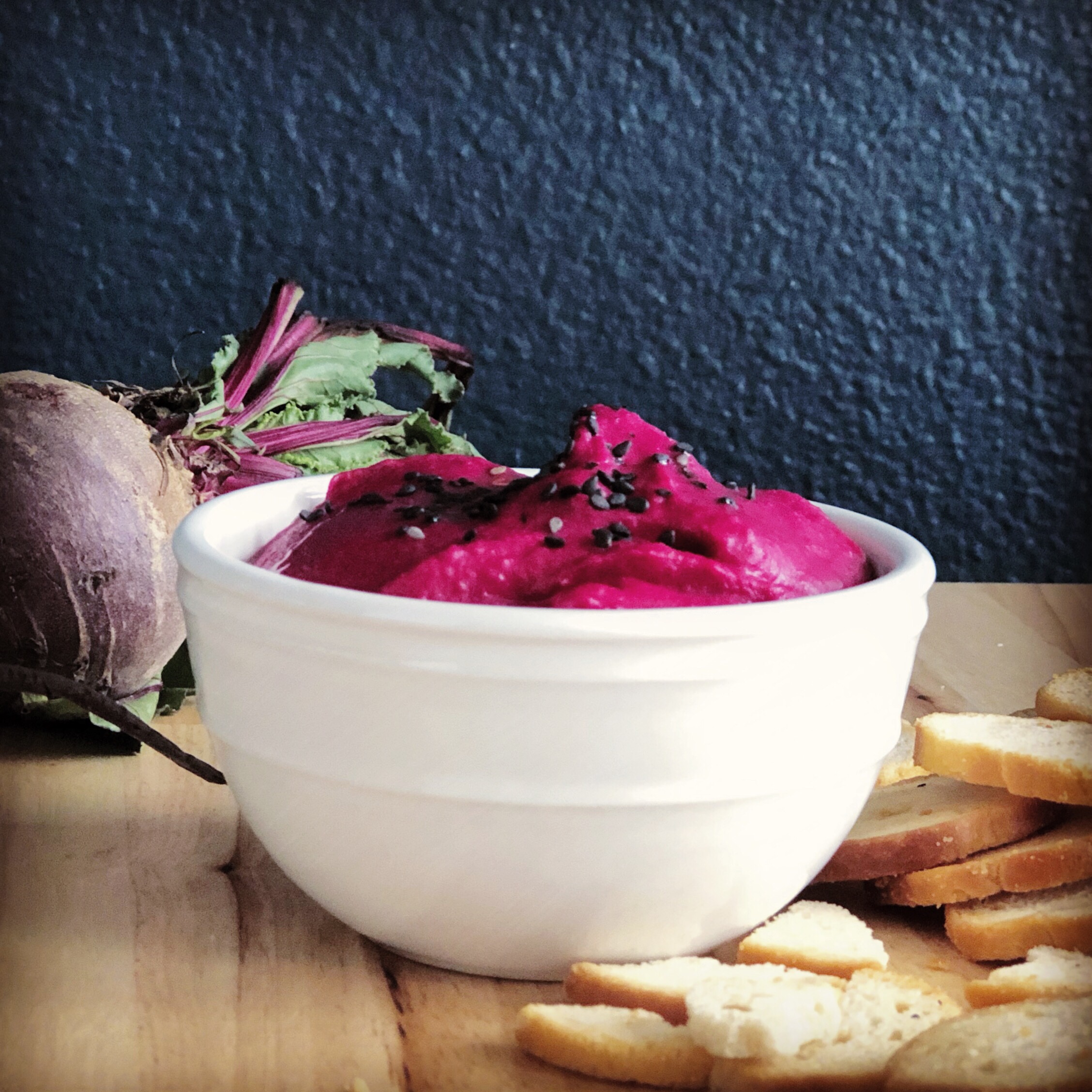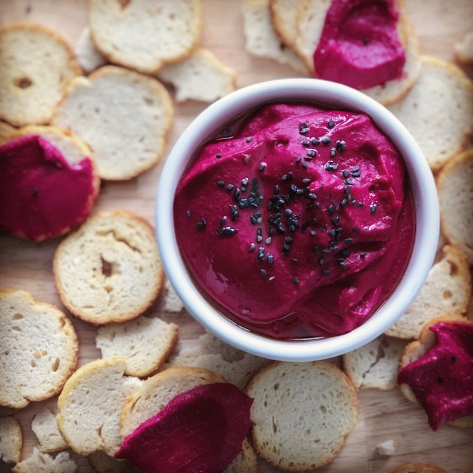 So beets are such a fun vibrant color, aren’t they? The downside of beets is the flavor profile. Some people think beets taste like dirt. (I wonder if it’s the same people who think that cilantro tastes like soap? 23andme are you reading this? Is there a gene that addresses this?) Beets are very earthy in flavor. So if you don’t like earthy I could see why you wouldn’t like beets. I was concerned about this when I came up with this recipe for hummus. All the recipes I found for white bean/beet hummus were fairly similar involving olive oil and/or tahini and/or lemon. Kind of like standard hummus but with beets whirled into the mix.